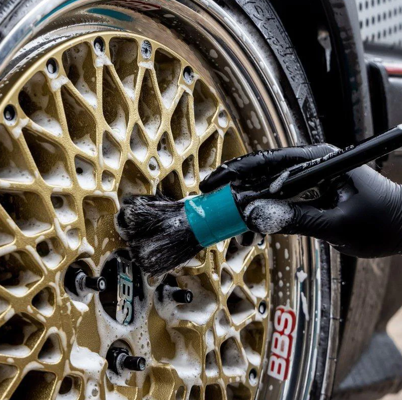 - При силно замърсени джанти използвайте detailing четка и почистете старателно джантите и гумите.