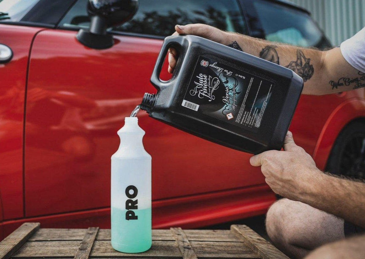 Auto Finesse Pro Range Mixing Bottle е смесително шише, устойчиво на агресивна химия. Перфектно шише за почистващи препарати Auto Finesse или за препарати от големи канистри. Регулируем спусък на пулверизатора (разпръскване или струя). Шишето има ергономична форма, която пасва точно в дланта. Отстрани е маркирано с мерна скала на 100 ml, което улеснява дозиране на препоръчаното съотношение за разреждане.
