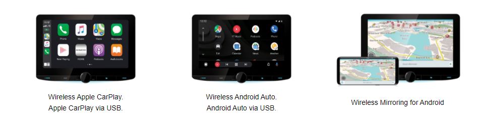 Apple CarPlay предоставя на потребителите на iPhone интуитивен начин за обаждания, използване на Maps, слушане на музика и достъп до съобщения чрез гласова команда или докосване. С iOS 12.0 и по-нови се поддържат и навигационни приложения на трети страни, като Google Maps™. Безжично свързване е налично за съвместими iPhone телефони.