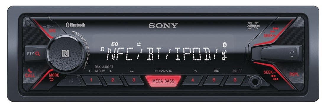 Авторадио SONY с размер 1DIN с интерфейс Bluetooth®, с USB и AUX входове, поддръжка на функцията Siri Eyes Free за iPhone, с MEGA BASS EQ5 и изходна мощност 4 x 55W.