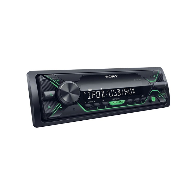 Автомагнитола SONY размер 1DIN с дисплей с висок контраст, с USB и AUX входове, с MEGA BASS EQ5 и изходна мощност 4 x 55W, зелено подсветяване.