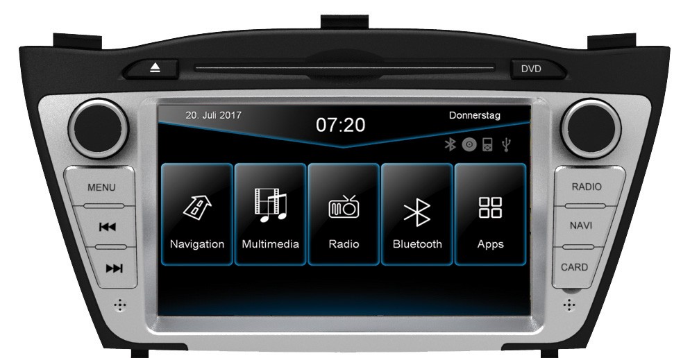 При наличен оригинален навигационен систем са необходими монтажни рамки VNA-IX35-F и в някои случаи се изисква оригиналният панел на централната конзола Hyundai (номер на част: 847402S050TAN).
