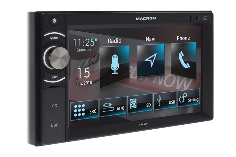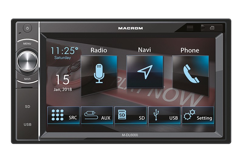 Macrom M-DL6000 е мултимедийно устройство без CD / DVD механика, с преден и заден USB вход и SD четец за памет карти. Устройството е оборудвано с 6,2" сензорен монитор, вход за камера за обратно виждане (при включване на задна предавка) и вход за управление от волана. Macrom M-DL6000 включва вградена GPS навигация и handsfree комплект с външен микрофон. С помощта на 2DIN монтажна рамка може да бъде поставено в повечето видове автомобили.