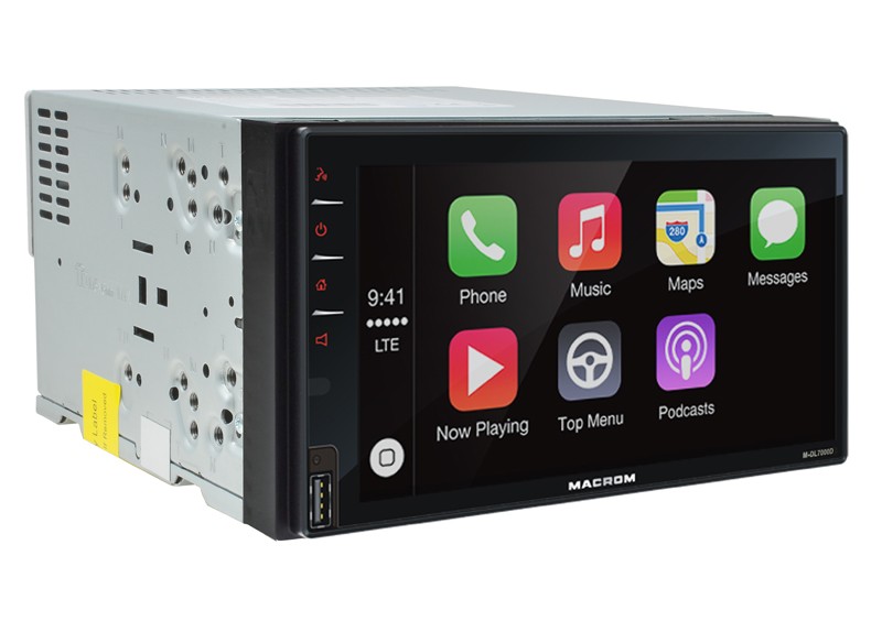 Macrom M-DL7000D е мултимедийно устройство, поддържащо функции Apple CarPlay, Android Auto, с вграден DAB+ тунер, заден и преден USB вход. Устройството е оборудвано с 6,8" капацитивен сензорен монитор, вход за камера за обратно виждане (при включване на задна предавка) и вход за управление от волана. Macrom M-DL7000D включва handsfree комплект с външен микрофон. С помощта на 2DIN монтажна рамка може да бъде поставено в повечето видове автомобили.
