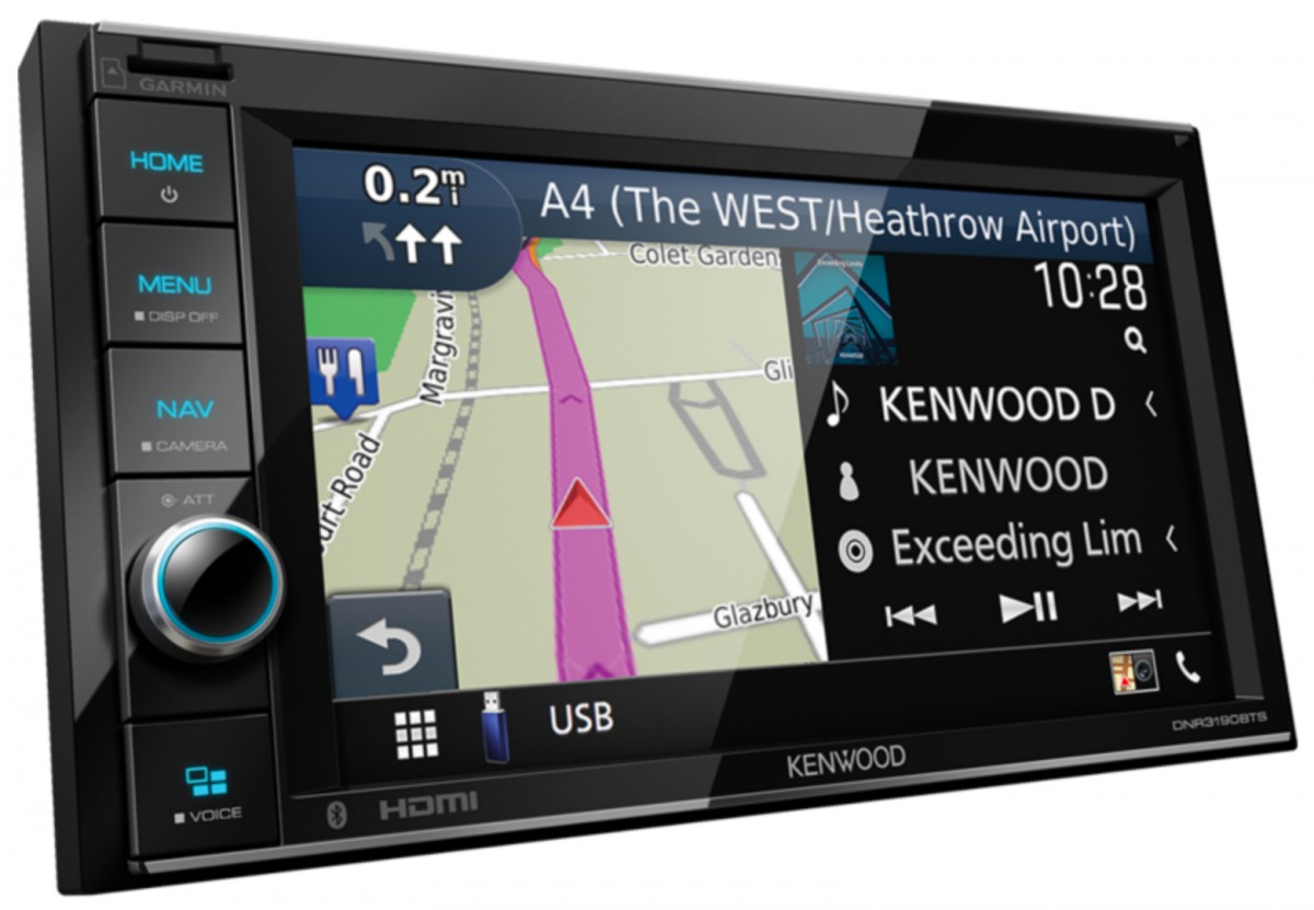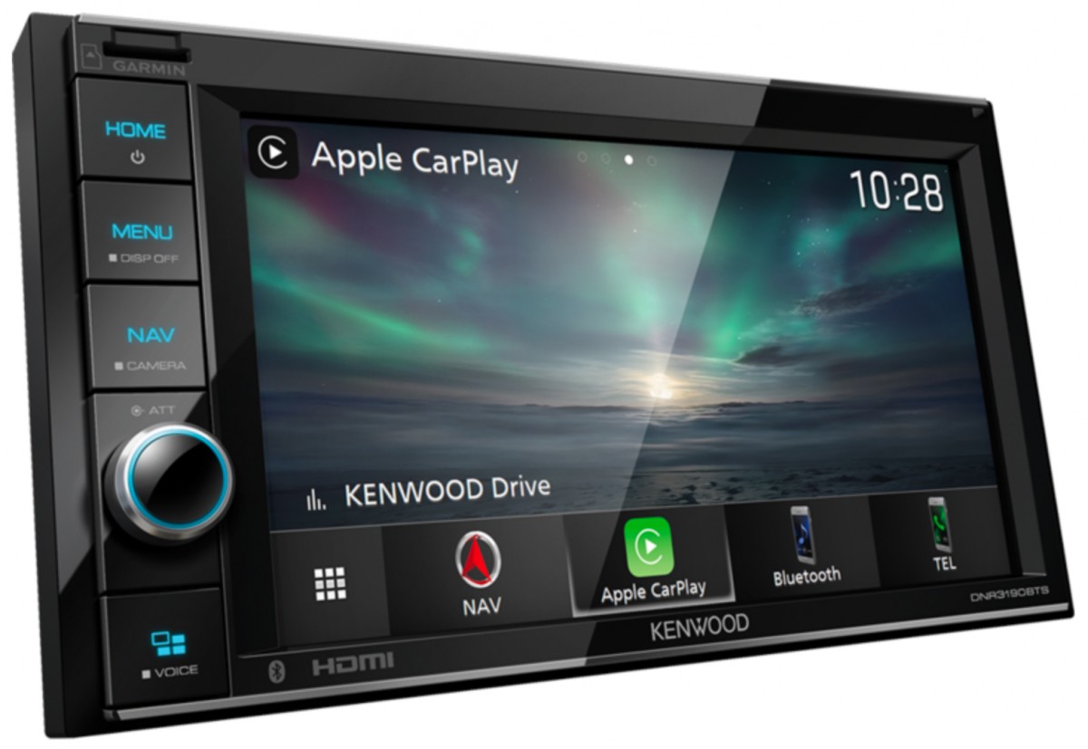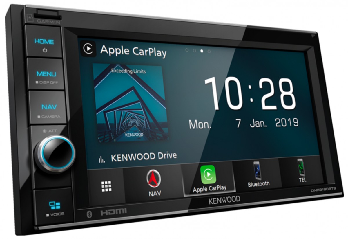 2DIN автомагнитола Kenwood без механика с 6,2" сензорен дисплей, вградена навигация Garmin, Bluetooth, USB, SD, HDMI, AUX и с поддръжка за Apple CarPlay и Spotify.Общи спецификации на автомагнитолата Kenwood DNR-3190BTS