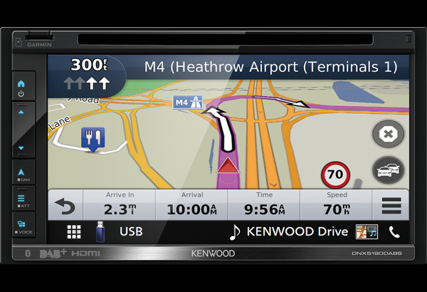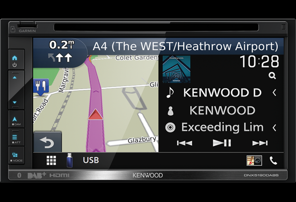 Мултимедийна 2DIN автомагнитола Kenwood с GPS навигация Garmin, Bluetooth, вграден DAB+ тунер, поддръжка за Android Auto, App Mode и Spotify.Общи спецификации на автомагнитолата Kenwood DNX-5190DABS