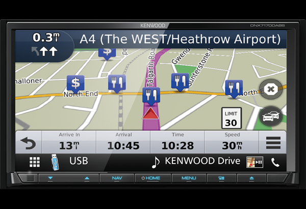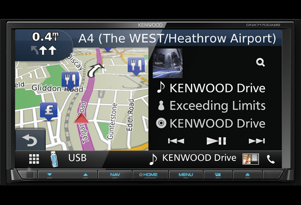 Нов модел 2DIN автомагнитола Kenwood с GPS навигация Garmin за 2017/2018 с 7" екран от Kenwood и с възможност за свързване на до 10 мобилни телефона. Вход към луксозните автомагнитоли на Kenwood.