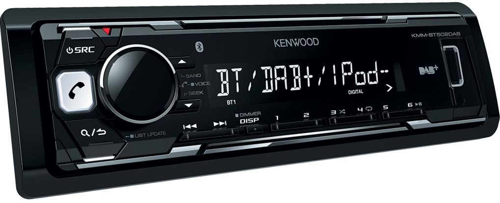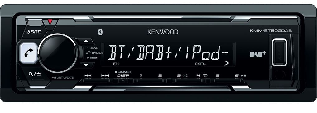Интересен модел автомобилно радио с DAB+/DAB тунер. Автомобилното радио Kenwood KMM-BT502DAB е безмеханично радио с дискретна бяла подсветка. Благодарение на вградения Bluetooth модул можете едновременно да използвате 2 мобилни телефона.