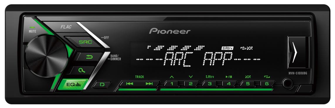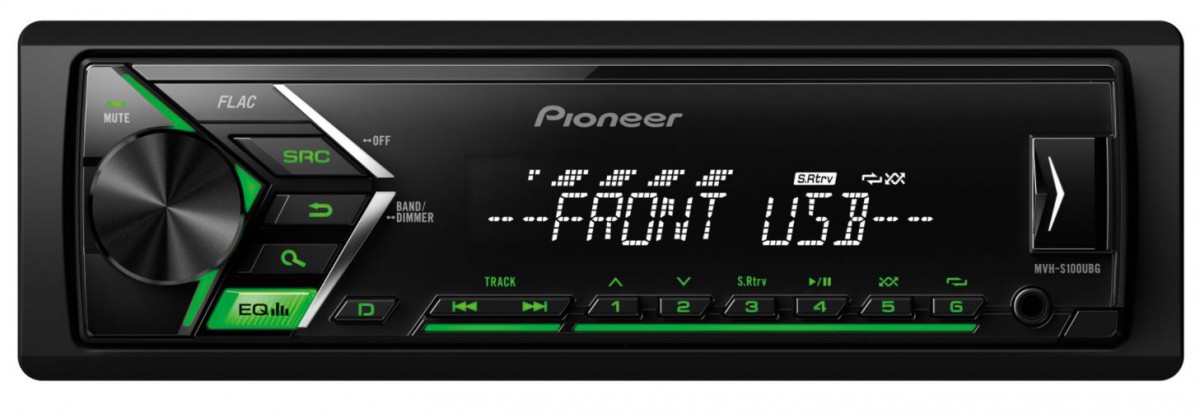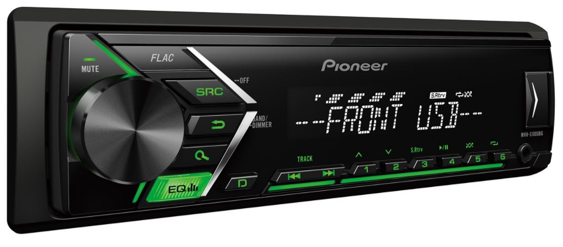 Безмеханично автомобилно радио Pioneer MVH-S100UB с зелена подсветка на бутоните, което на много разумна цена поддържа формат FLAC и освен това изглежда отлично. Специално разработено радио за дигитална музика, за свързване с Android смартфон и други устройства чрез предния USB вход или AUX. По този начин можете да слушате любимите си песни и в същото време да зареждате батерията на мобилния телефон (през USB). Това радио предлага 4 x 50 W чиста мощност MOSFET и качествено възпроизвеждане на звука. Благодарение на задния RCA изход можете да инсталирате активен субуфер или усилвател.