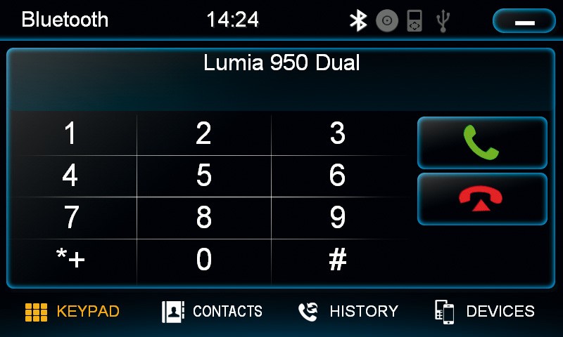 - Handsfree Bluetooth ™, синхронизация на телефонния списък и аудио стрийминг A2DP