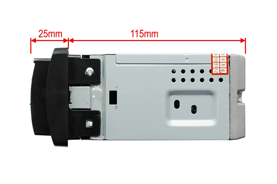 | Размер на авторадиотоАвтомагнитолите се разделят на 2 основни размера, автомагнитоли 1DIN и автомагнитоли 2DIN. Автомагнитолите с размер 1DIN - точните размери, включително металната рамка, в която се вкарва автомагнитолата, са 184 x 53 mm, външните размери на маркова 1DIN автомагнитола са 188 x 59 mm. 2DIN автомагнитолите ги познаваме от по-новите автомобили, класически пример е VW Golf IV с навигация. Размерите на 2DIN автомагнитола без метална рамка са 180 x 101 mm, външните размери на маркова 2DIN автомагнитола са 189 x 119 mm. | 1DIN |