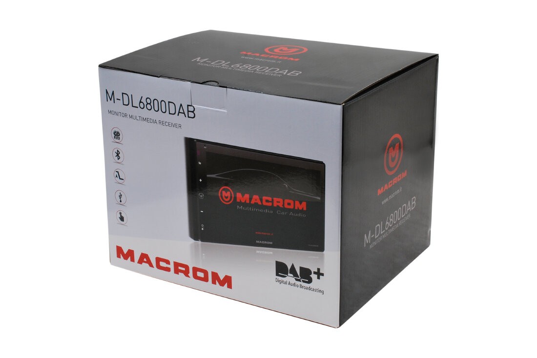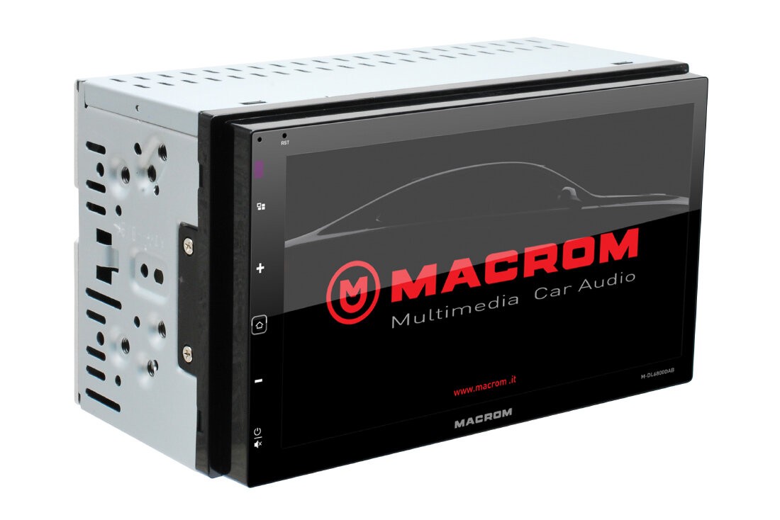 MACROM M-DL6800DAB е модерен 2DIN мултимедиен плейър с 6,8″ капацитивен сензорен дисплей, който комбинира цифрово DAB+ радио, Bluetooth handsfree с външен микрофон и поддръжка за отразяване на екрана на Android телефон чрез функцията AutoLink. Предлага широки възможности за възпроизвеждане на музика и видео от USB и micro SD карти и позволява лесно свързване на паркинг камера. Благодарение на късото шаси (само 75 mm) монтажът е прост и гъвкав. В комплекта е включена и DAB антена за стъкло.