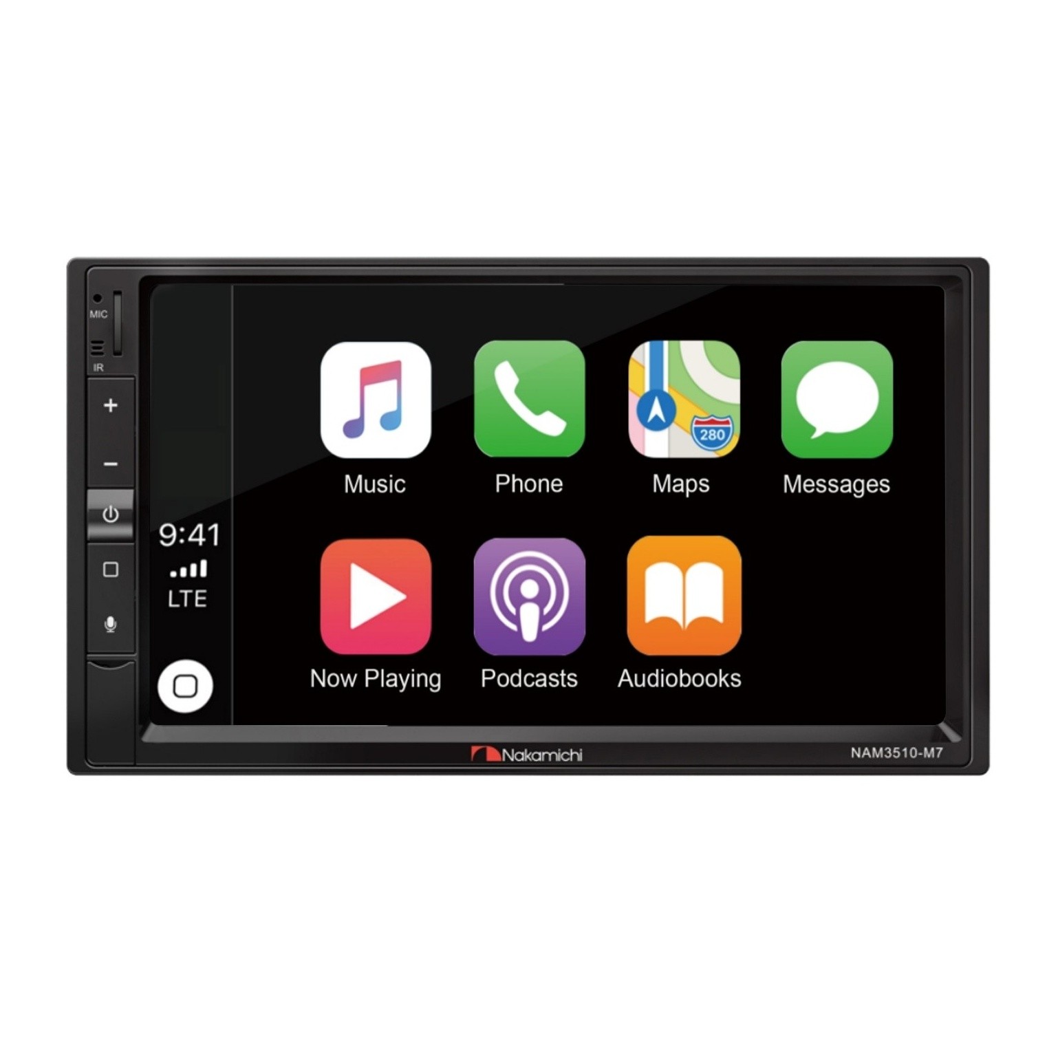Nakamichi NAM3510-M7 е безмеханично автомобилно радио с размер 2DIN, което разполага със сензорен дисплей с размер 7". На предния и задния панел има USB вход, чрез който можете да възпроизвеждате любима музика или мултимедия. За същите цели можете да използвате и допълнителен слот за microSD карта. Радиото поддържа и популярните функции Apple CarPlay и Android Auto, благодарение на които можете да управлявате приложения като Spotify, Tidal, Waze, Google Maps, Facebook и много други през сензорния дисплей на радиото. Разбира се, има и Bluetooth за безопасни разговори и стриймване на музика. Микрофонът при този модел е интегриран, но е възможно да се свърже и външен микрофон. Цветът на бутоните може да се избира по желание благодарение на променливото подсветване, в опаковката има и дистанционно управление и ще зарадва наличието на 3 чифта RCA изходи (4 V) за усилватели. Насочеността към по-високо качество на звука личи и от вградения DSP процесор, на който може да настроите и времеви корекции или 16-лентов еквалайзер.Най-интересни характеристики на автомобилното радио Nakamichi NAM3510-M7
