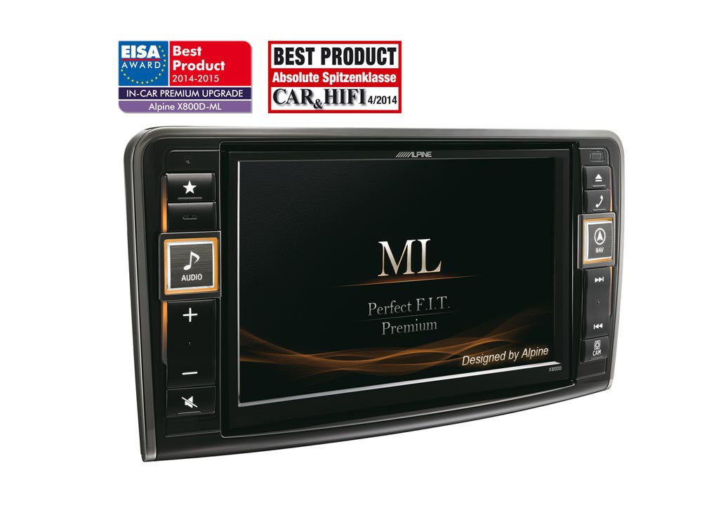 Alpine X800D-ML е усъвършенствана навигационна единица с 8" тъч скрийн, DAB+ тунер, Bluetooth, технология MirrorLink, HDMI вход, 3 чифта RCA изхода и DSP процесор за автомобили Mercedes Benz ML (W164) и GL (X164). Всички компоненти са проектирани така, че да се вписват перфектно в съществуващите монтажни места и да се интегрират безупречно с електронните системи на автомобила.