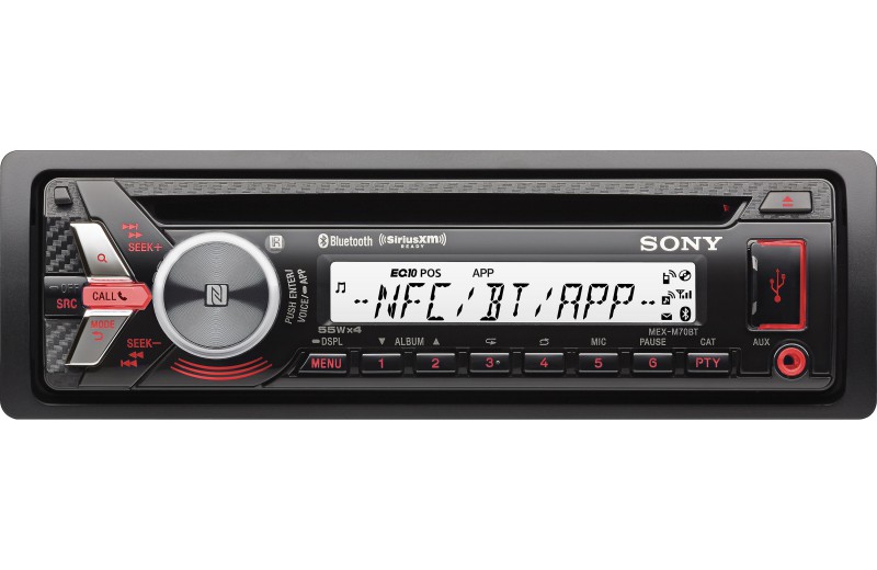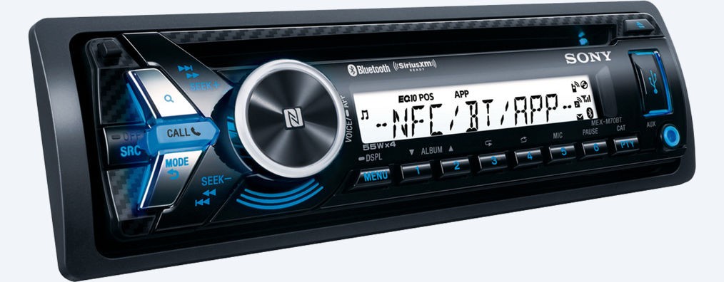 Автомобилно радио SONY размер 1DIN с CD плейър, USB вход, с Bluetooth и NFC за незабавно сдвояване с телефона, с изходна мощност 4 x 55W, синя и червена подсветка на бутоните, UV-устойчиво, водоустойчиво.