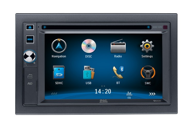 Мултимедиен приемник, авторадио, MAC 620 с широкоъгълен 16 cm TFT монитор, сензорен LCD дисплей и LED подсветка е предназначен за монтаж в слот 2DIN и предлага операционна система с интуитивен потребителски интерфейс Windows 6.0 CE. К към радиото може да се закупи навигационен софтуер. Дисплеят е оборудван с 4-посоченm регулатор на яркостта и функция за автоматично затъмняване за оптимално настройване към текущите светлинни условия. Функцията Bluetooth позволява безжично стриймване на музика чрез A2DP аудио стрийминг. Възпроизвеждането на звука може да се настрои индивидуално чрез 10-лентов еквалайзер.