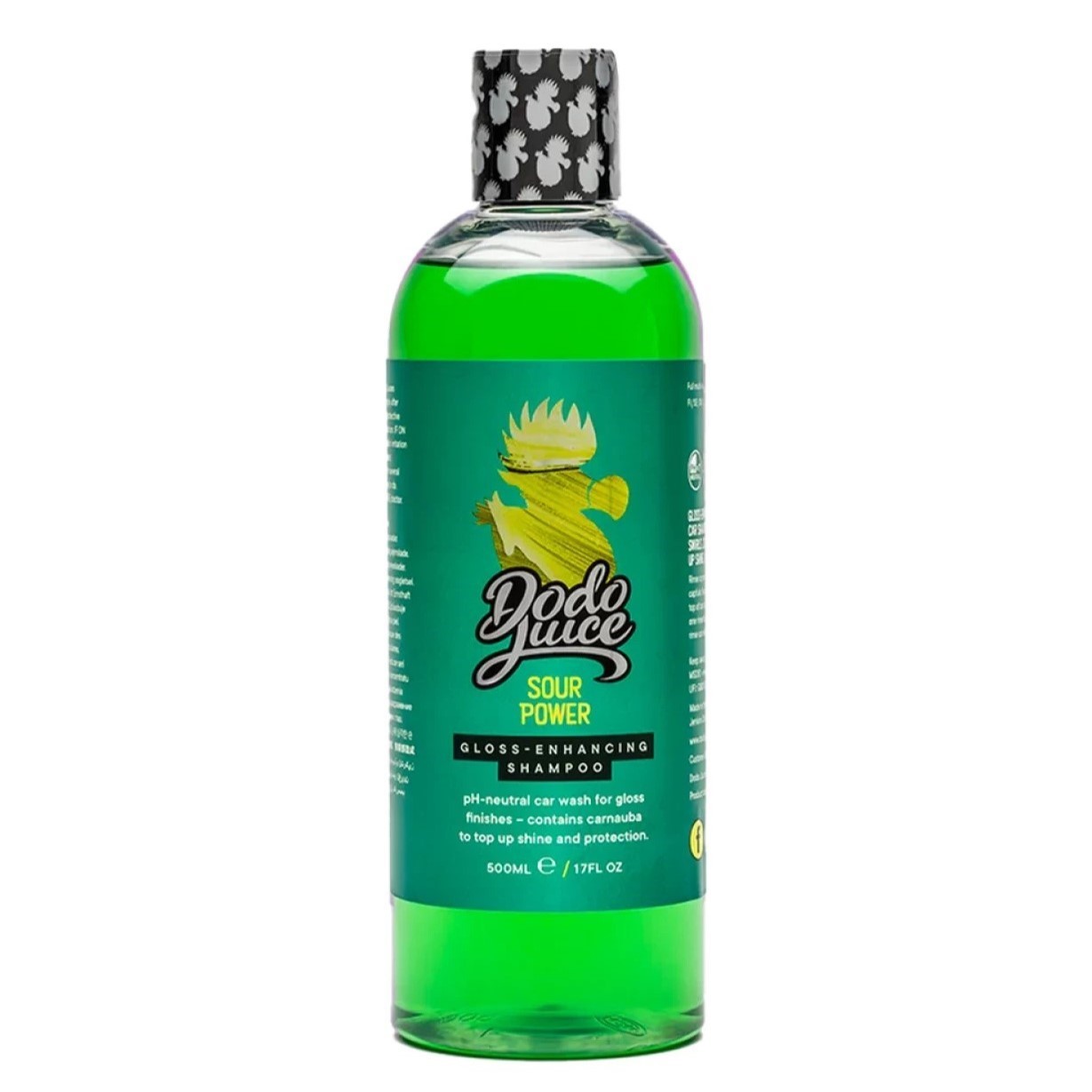 Dodo Juice Sour Power е pH неутрален шампоан, който съдържа още и естествена бразилска карнауба. Това придава блясък на лака и усилва съществуващата восъчна защита. Както е характерно за Dodo Juice, този шампоан е висококонцентриран, със съотношение 1:600. Всички останали предимства той наследява от популярния шампоан Born To Be Mild. Той е също толкова пенлив, смазващ и разбира се не вреди на вече нанесения восък. Освен това има невероятен аромат на зелени ябълки.