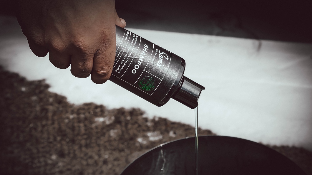 - Натиснете бутилката леко еднократно или два пъти и излейте така шампоана в първата кофа.