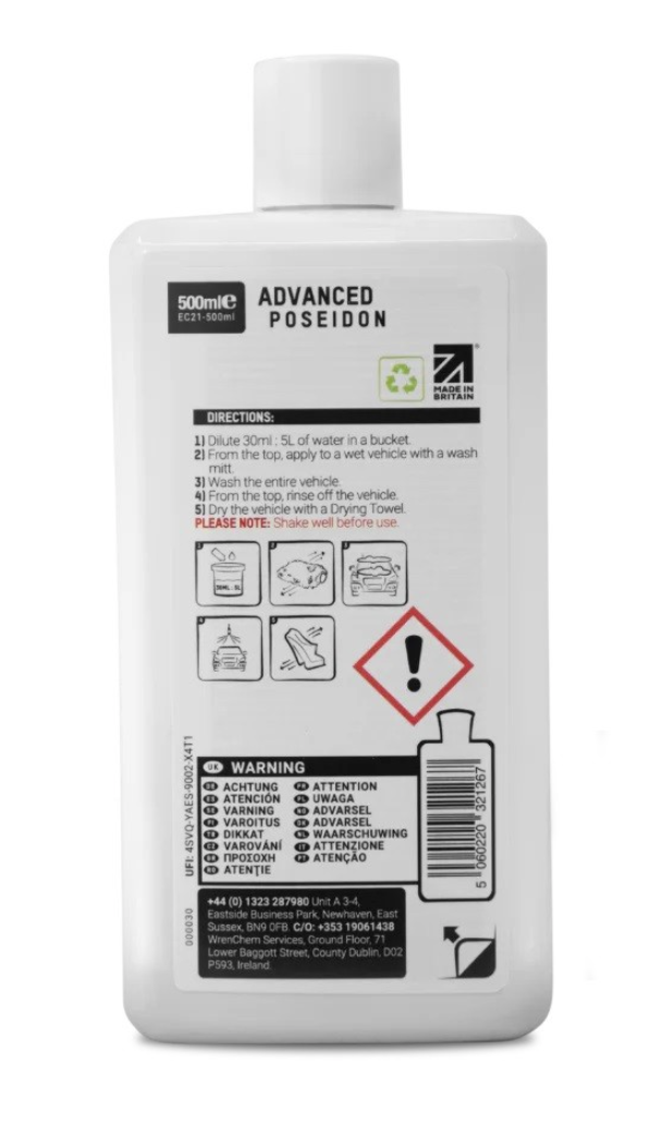 Технологията на автошампоана ValetPRO Advanced Poseidon Car Wash използва специална смес от анионни повърхностноактивни вещества и полимери за лесно отстраняване на замърсявания. След изплакване оставя защитен филм, повишаващ блясъка. Този защитен слой запазва повърхността на лака по-дълго чиста и същевременно удължава защитата на восъка или sealant-а. Разрежда се в съотношение 30 ml шампоан в 5 литра вода.