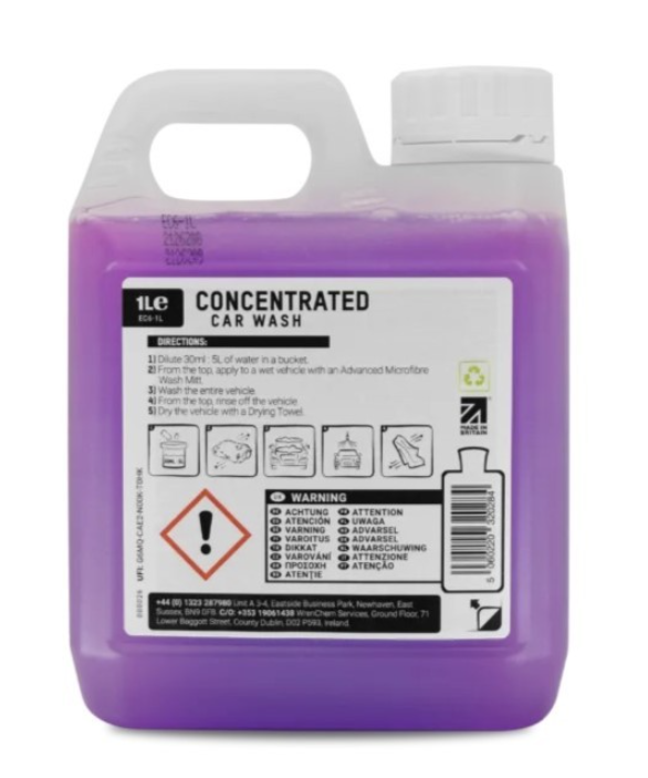 ValetPRO Concentrated Car Wash е качествен автошампоан, който е изключително лесен за употреба. Шампоанът прониква в замърсяванията на повърхността и ги обгръща в сапунена пяна. Отстранява остатъчната мръсотия от каросерията чисто и безопасно, която след това може лесно да се изплакне. Това е икономичен автошампоан, който почиства бързо и ефективно. Разрежда се в съотношение 30 ml шампоан на 5 литра вода.