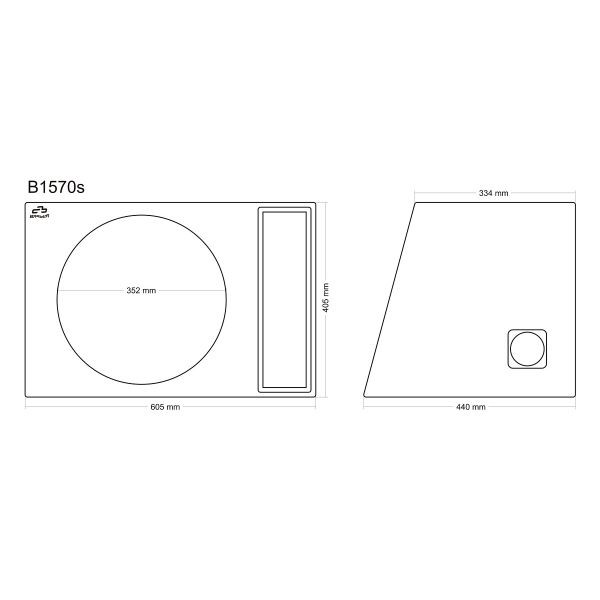 | Размер на отвора за субуферОтвор за съответната диаметрална категория субуфери. За 300 mm субуфер отворът обикновено е около 28,3 см. Монтажните диаметри на субуферите обикновено са стандартизирани, така че няма нужда от промени. | 38 см (15\") |