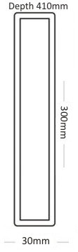 | Размери на корпуса на тонколонатаРазмерите на корпуса на тонколоната се дават като височина, ширина и дълбочина, която често е по-голяма в долната част, отколкото в горната, поради скосената задна стена. | 465 x 360/271 x 345 mm |
