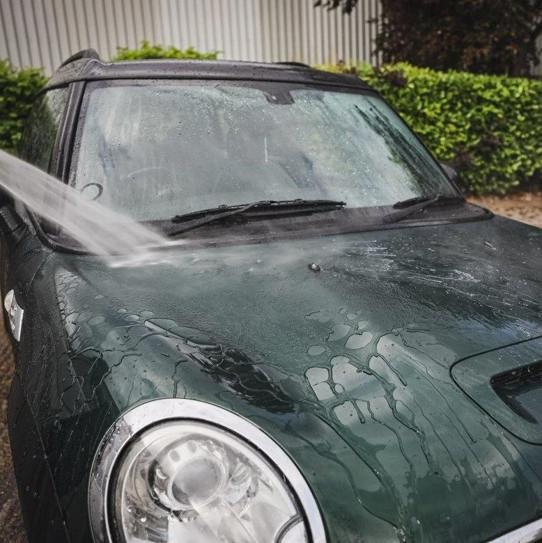 - Изплакнете автомобила със силна струя вода отгоре надолу.