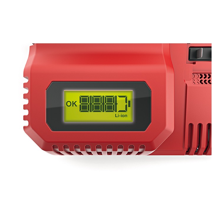 За зареждане на акумулатори 10,8 и 18,0 V. С голям LCD дисплей за диагностика на батериите и състоянието на зареждане. Време за зареждане 10,8 V: около 40 мин. за 2,5 Ah / за 4,0 Ah и около 55 мин. за 6,0 Ah акумулатори. Време за зареждане 18 V: около 40 мин. за 2,5 Ah и около 45 мин. за 5,0 Ah. Благодарение на специалния заряден процес се постига зареждане до 80 % от капацитета приблизително за 30 минути. С вградено охлаждане на акумулатора. Защита срещу прегряване, разреждане и претоварване.