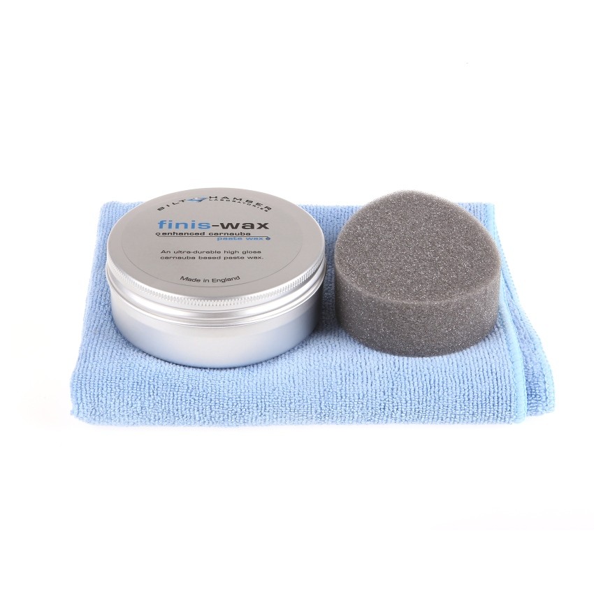 Bilt Hamber Finis-Wax е премиален твърд восък, предназначен като последна стъпка в защитата на боята. Карнаубен восък от най-висок клас T1, използван при производството, осигурява дълбок и богат блясък. Но за разлика от някои други восъци, при които отличният блясък, лесното нанасяне и полиране се постигат чрез допълнителни блестящи молекули, Finis-Wax за щастие не съдържа тези „подобрители“. Finis-Wax може да превъзмогне дори много по-скъпи конкурентни восъци с карнауба. Освен това Finis-Wax издържа по-дълго върху боята на каросерията. Bilt Hamber Finis-Wax е лесен за нанасяне и оставя след себе си влажен вид. Съдържа твърди съставки, които придават на боята качествена защита и издръжливост. Създава визуално перфектен, дълбок и влажен вид, който не само изглежда отлично, но и помага да се предпази боята от образуване на неприятни корозионни „мехурчета“. Finis-Wax е неабразивен восък. В комплекта е включен апликатор Bilt Hamber и микрофибърна кърпа.Основни характеристики