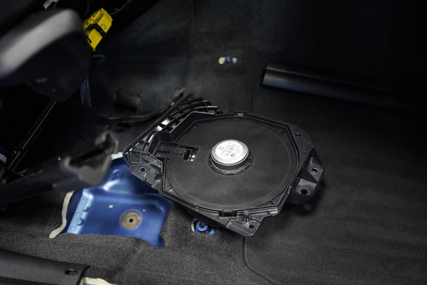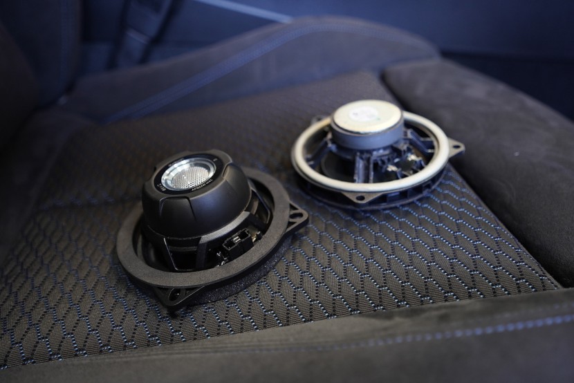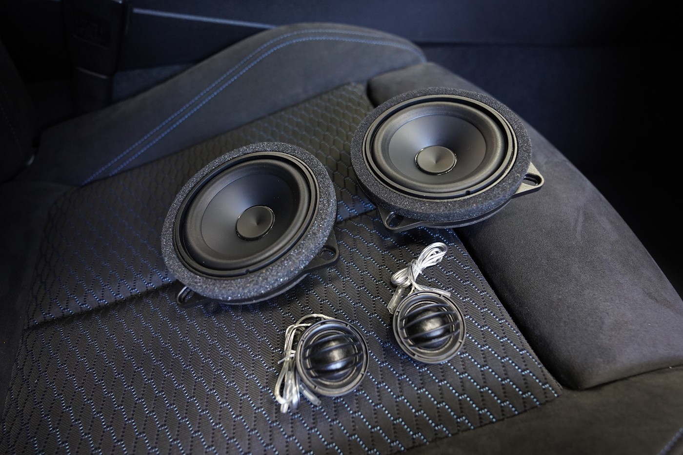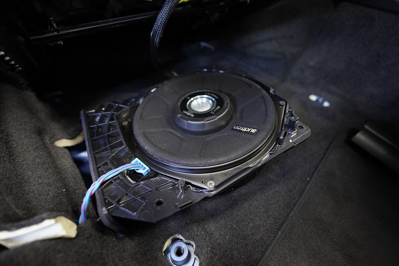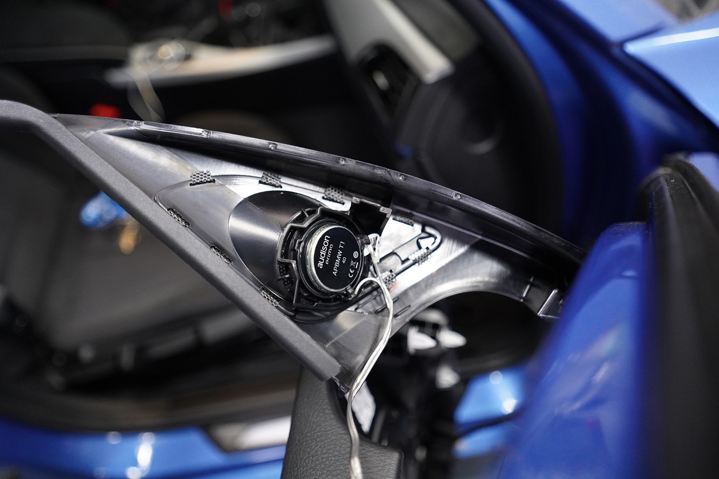Монтаж на високоговорители и субуфери Audison в BMW серия 1. От нашите инсталации в BMW сте свикнали основно с пълни озвучителни системи Audison, включително усилвател с DSP процесор, но голямата разлика се усеща и само при смяната на високоговорителите, свързани към фабричното радио. В тази инсталация заменихме предните високоговорители и субуферите. В автомобила имаше базово озвучаване без високочестотни говорители и малки хартиени субуфери с диаметър 165 mm. Оригиналните високоговорители в предните врати заменихме с компоненти Audison, които имат същата форма и конектори като фабричните говорители. Така че те се подменят лесно. Поради липсата на високочестотни говорители е необходимо да се закупят оригиналните решетки за високоговорители, които за този модел се продават само с логото Harman Kardon. Говорителите освен много качествен звук имат и висока чувствителност, така че на същия източник звучат по-силно и без изкривяване при по-високи нива. Същото важи и за субуферите под седалката. Същата форма, но по-голям размер 200 mm и несравнимо по-качествена и по-изразена басова част. Препоръчваме субуферите винаги да се свързват към усилвател, но дори директната замяна има значителен ефект благодарение на високата чувствителност на новите субуфери Audison.
