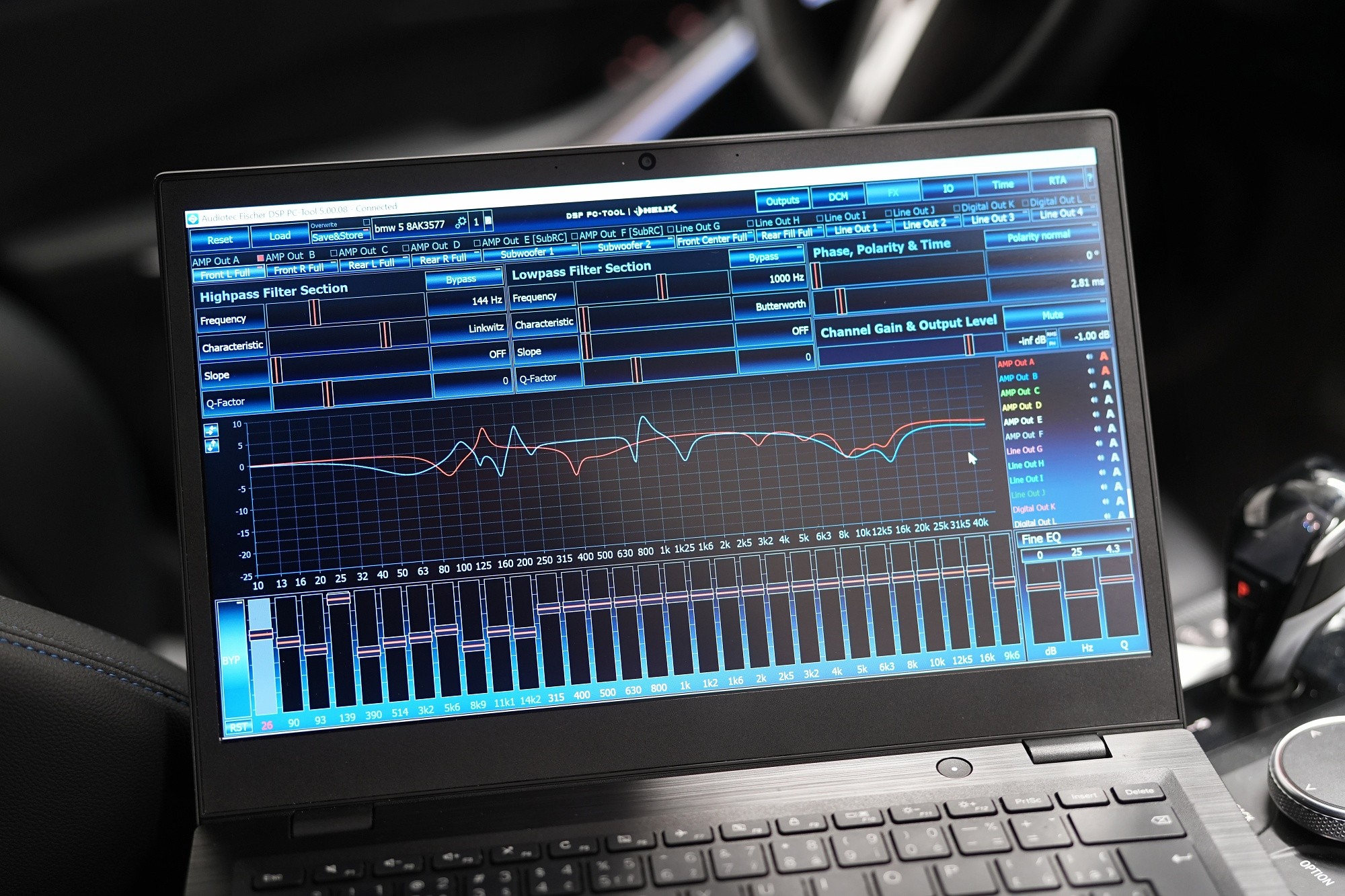 Вид на инсталациятаOzvučení s měřením zvuku a nastavení na DSP procesoru