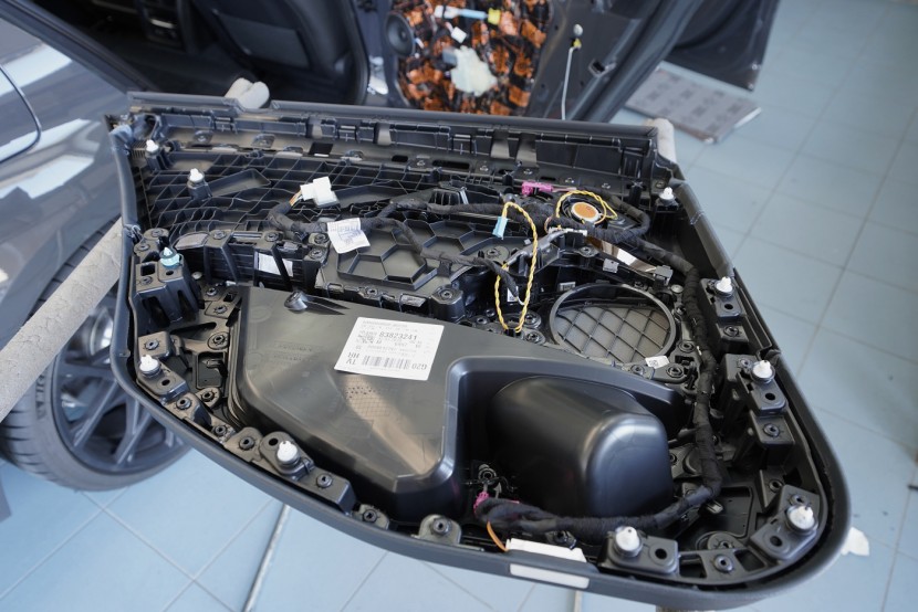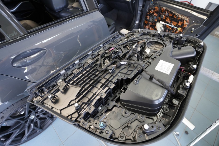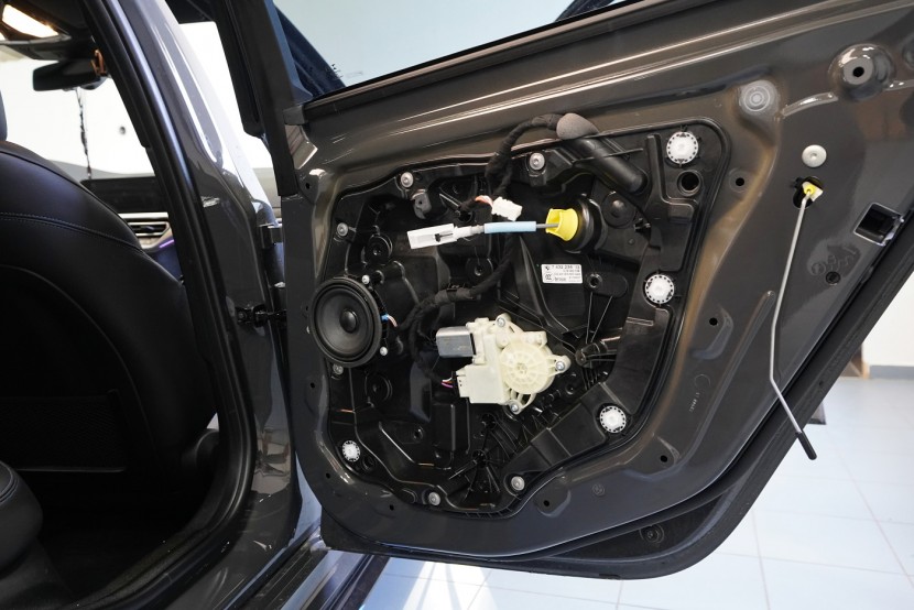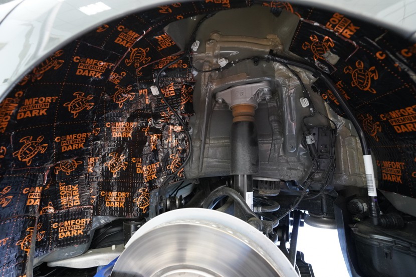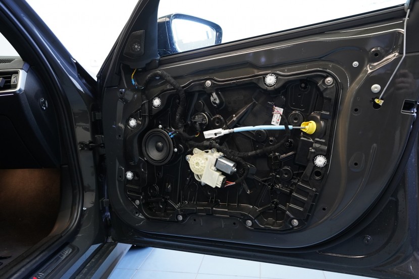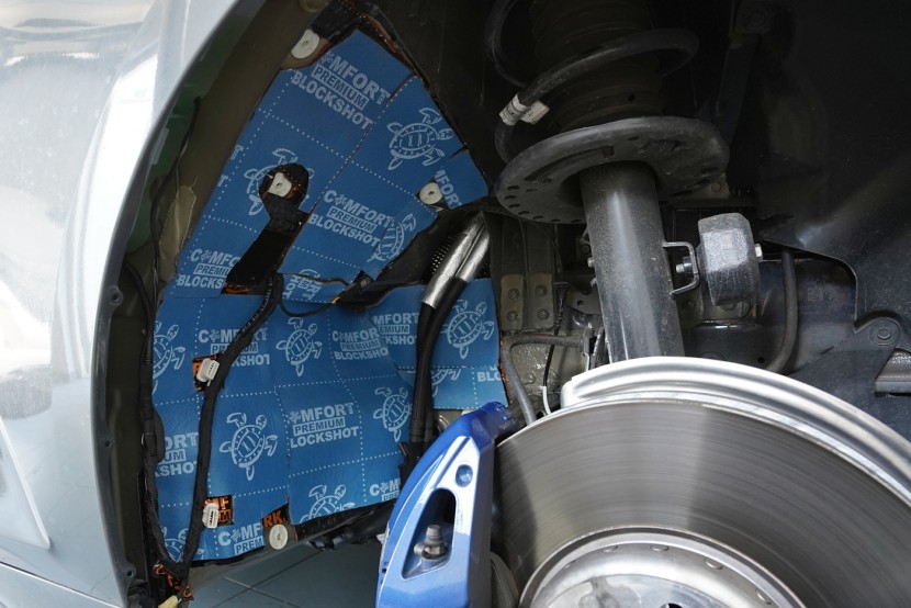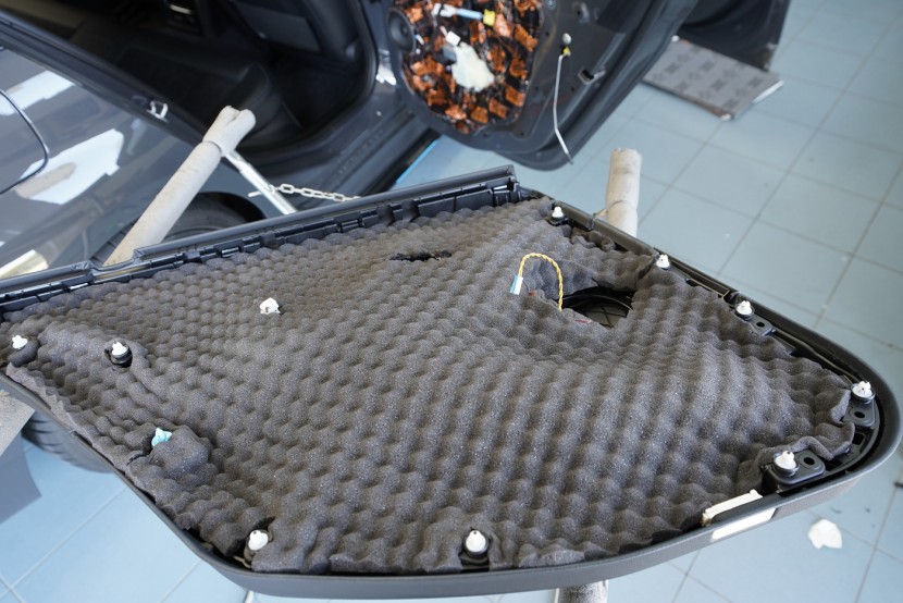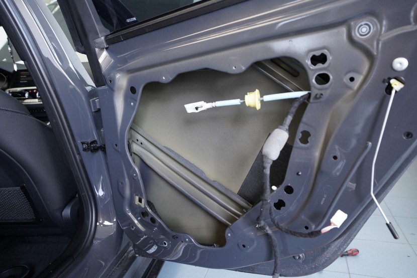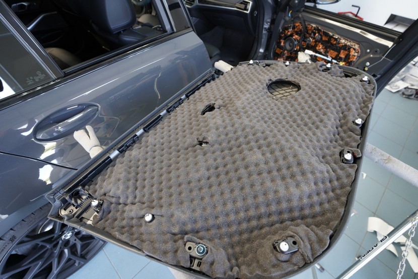 Шумоизолация на всички врати и калници на BMW 3 от най-новата моделна серия. Ако искате да намалите шума в интериора на автомобила, подходящо решение е да започнете именно от вратите. Чрез тях прониква висок процент шум в купето и качествено шумоизолирани врати могат значително да намалят шума от пътя. Предните и задните врати шумоизолираме общо в 4 слоя, тъй като това е област, силно натоварена с вибрации и шум. Надеждно шумоизолирахме и предните, и задните калници. При този автомобил вместо класическите пластмасови подкалници те са текстилни. Затова шумоизолираме металната част на подкалника с два слоя. Първият слой е антивибрационен материал от серията Premium с дебелина 4 mm, а като втори слой нанасяме звукоизолационния материал Blockshot също от серията Premium. Blockshot благодарение на своя състав и уникална противошумна мембрана е в състояние да намали шума до 32 dB и ще покаже способностите си и на предните, и на задните калници на този автомобил. Макар че извършихме само базова шумоизолация, благодарение на висококачествените мембранни материали Comfortmat успяхме значително да намалим шума в интериора. Монтажът на шумоизолацията при този автомобил отне повече време от обичайното заради наличието на механизъм за повдигане на прозореца, който трябваше да демонтираме, както и всички стъкла бяха свалени.Показване на продуктиСкриване на продукти
