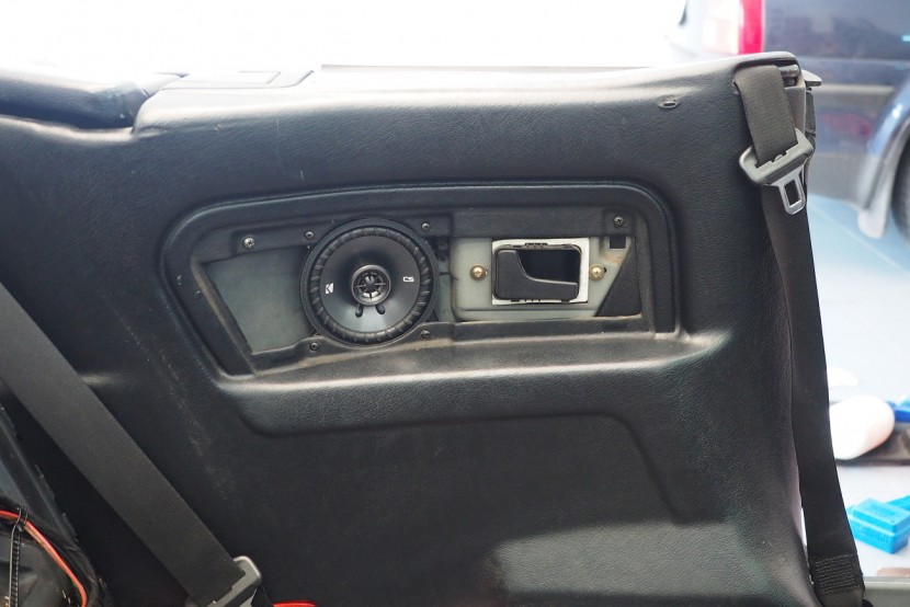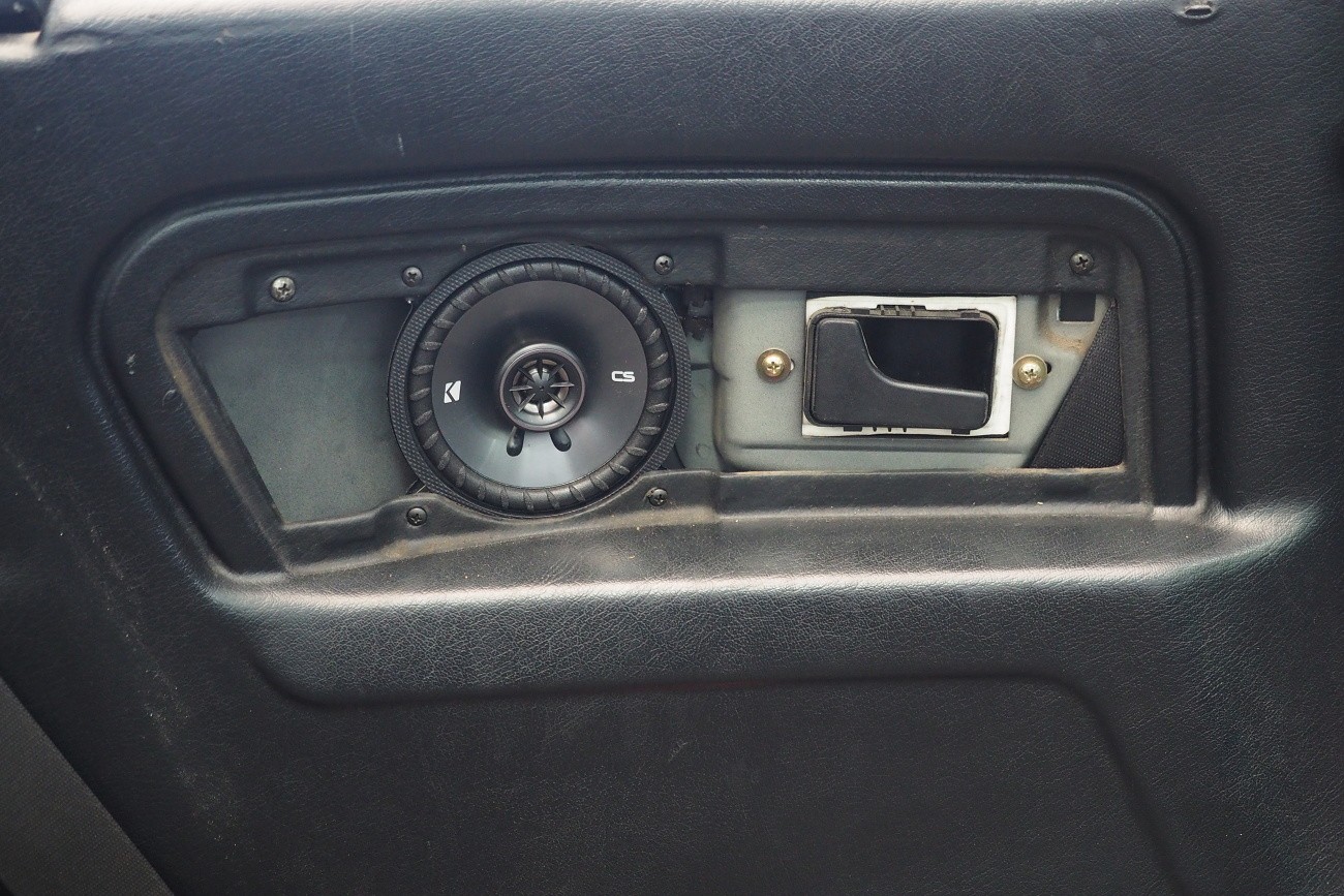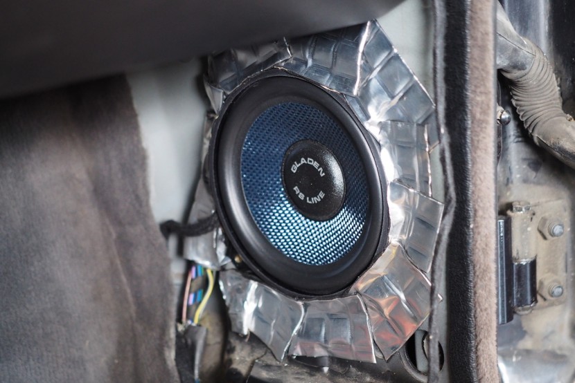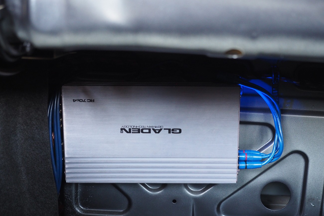 Смяна на износената звукова система в автомобила BMW E30 Cabrio. Инсталирахме ново авторaдио Alpine с USB слот и bluetooth handsfree и също така заменихме оригиналните говорители. В предната част поставихме компонентни говорители Gladen от серията RS и в задната — коаксиални говорители Kicker с ниска монтажна дълбочина. Всички говорители бяха свързани към усилвател Gladen.