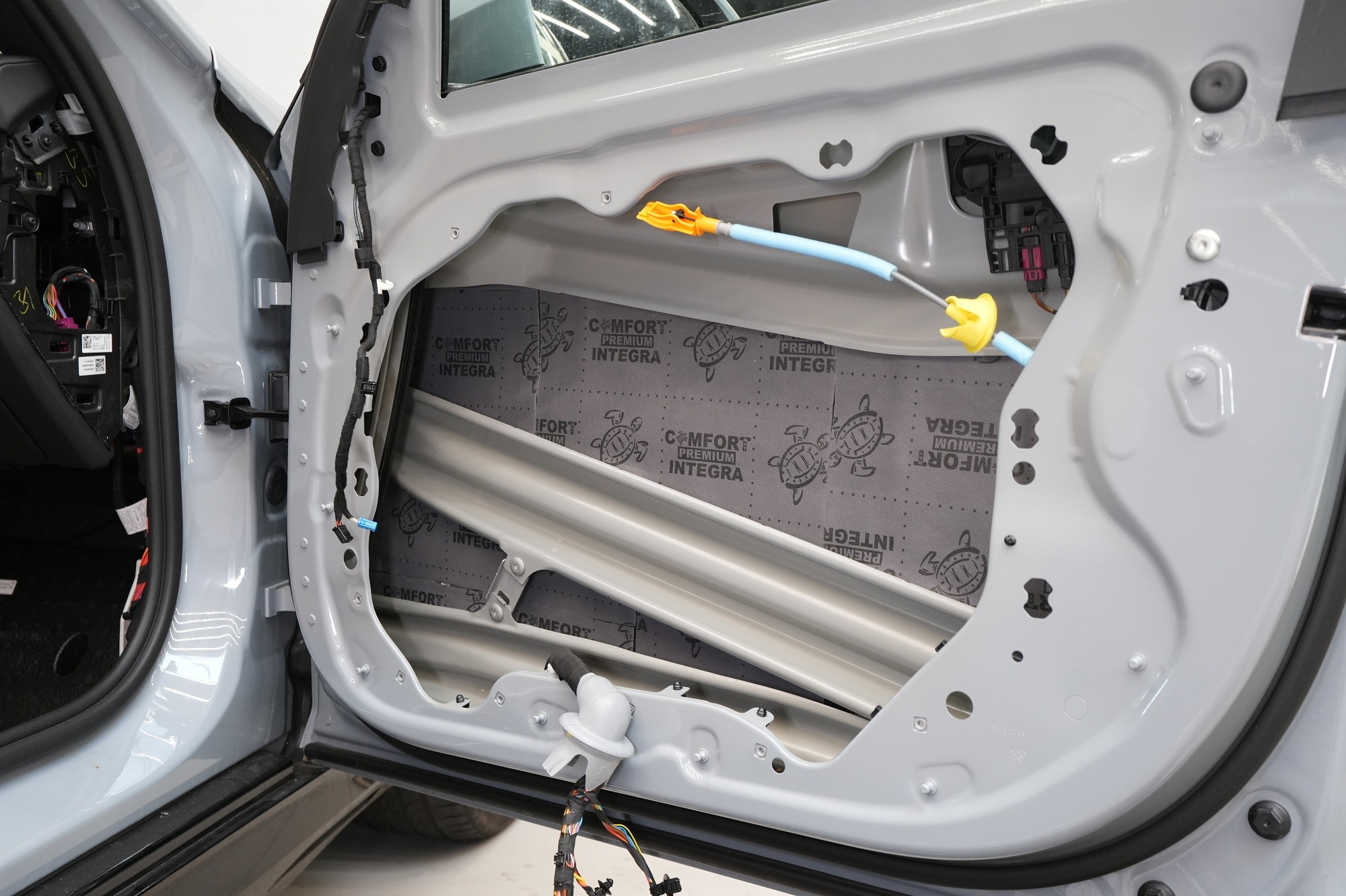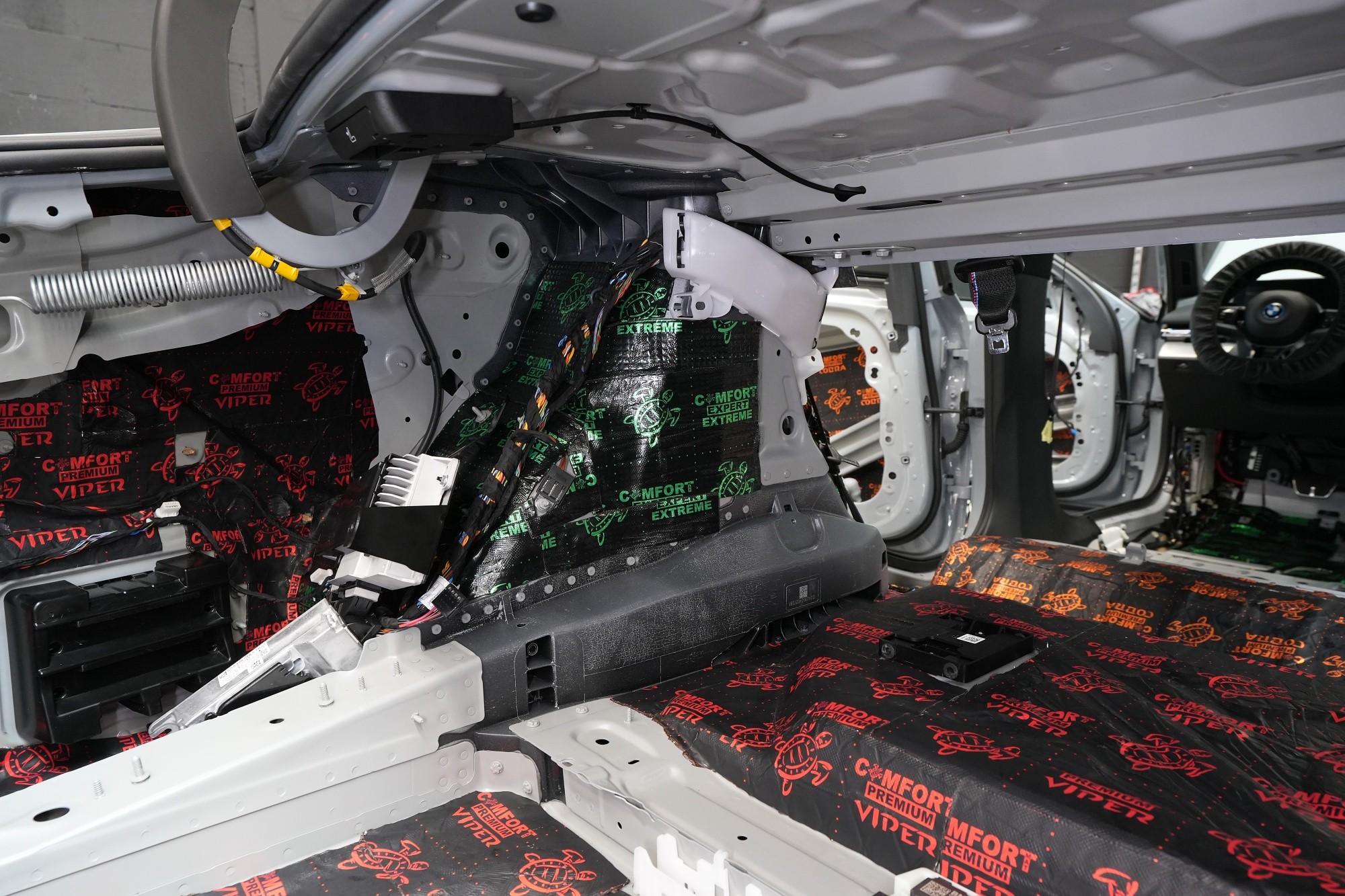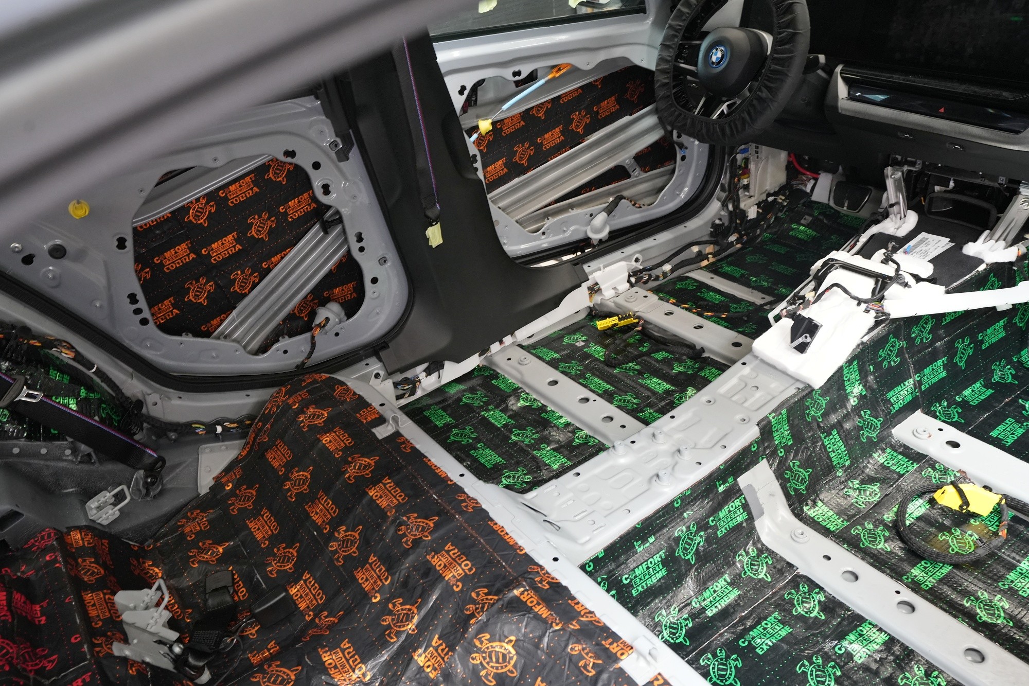 Звукоизолация на BMW 5-та серия (G60) в актуалното поколение. В нашия сервиз не подминаваме и немските премиум автомобили, от които техните собственици очакват повече, поне що се отнася до звуковата изолация. Макар че този модел предлага високо ниво на комфорт и качество, звукоизолацията може значително да подобри впечатлението при шофиране. Нанасянето на нашите материали значително намалява шум от гуми и аеродинамичен шум, което повишава удобството при пътуване, намалява умората и подобрява акустиката на интериора за по-голямо удоволствие от аудиосистемата. Звукоизолацията добавя още едно ниво лукс към вече престижния модел. С клиента се договорихме за нашия пакет за звукоизолация Expert Plus, в който ще се фокусираме върху почти всички най-важни зони на автомобила. Прибавката Plus означава подобрена версия на пакета с по-ефективни материали, насочени към шума от пътя и калниците. Конкретно изолираме предните, задните и петите врати, пода, багажното пространство, покрива, предните и задните калници от външната и вътрешната страна на автомобила. За монтажа работят едновременно четирима наши техници, които извършват монтажа в рамките на 1 работен ден. Резултатът от монтажа е намаление на шума поне с 3 dB, което представлява двукратно намаление спрямо първоначалното състояние. Това предоставя на водача и пътниците още по-приятно и по-луксозно изживяване при шофиране.Показване на продуктиСкриване на продукти