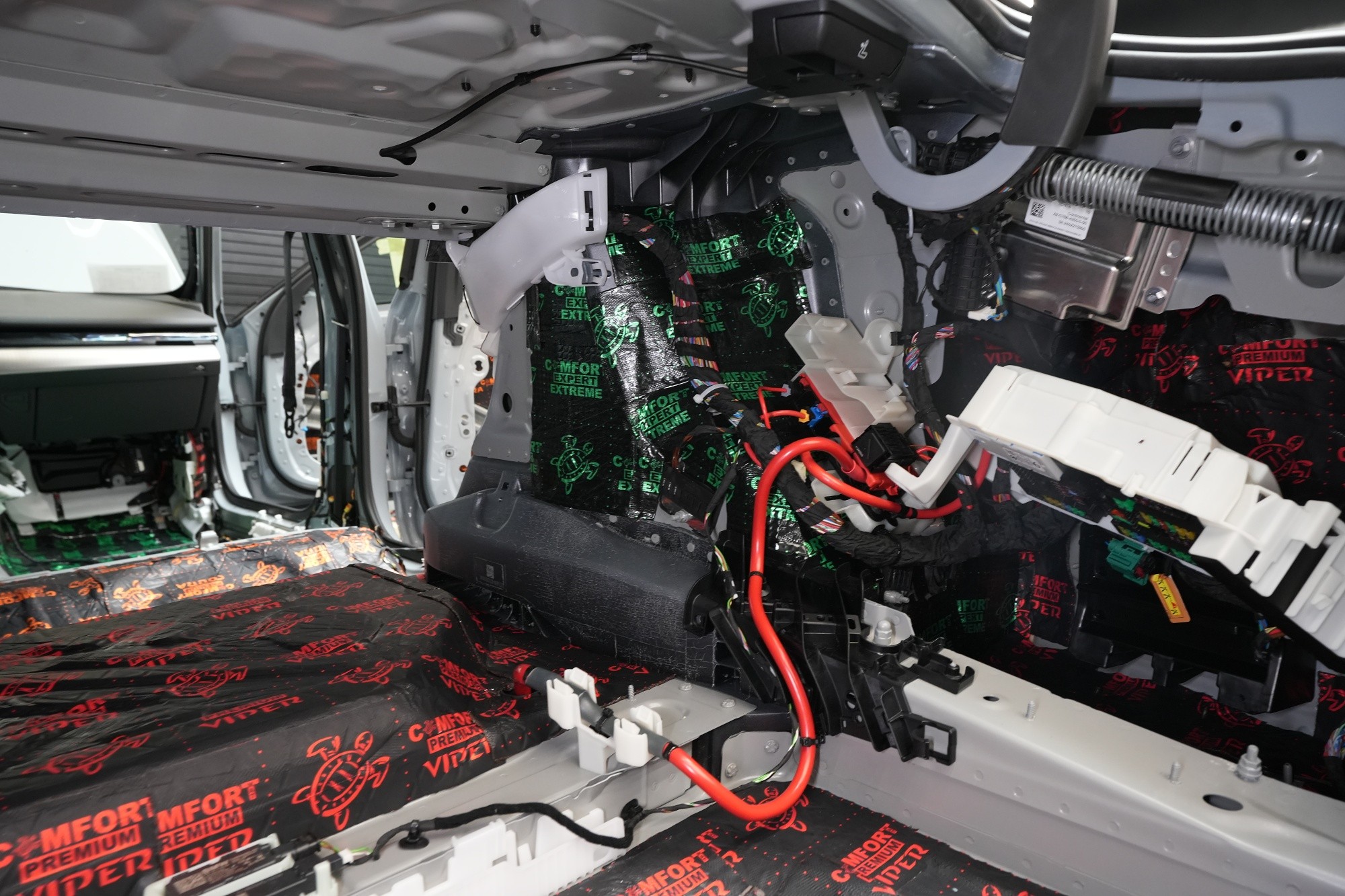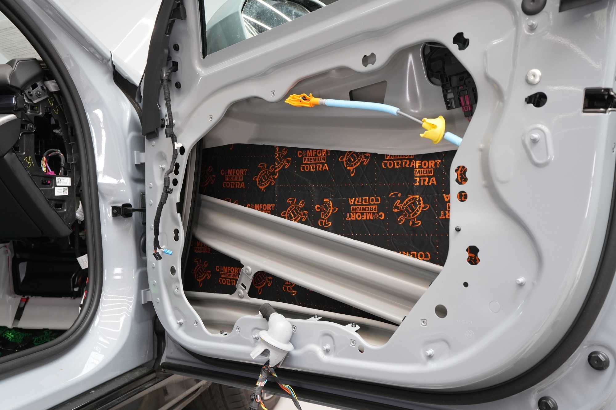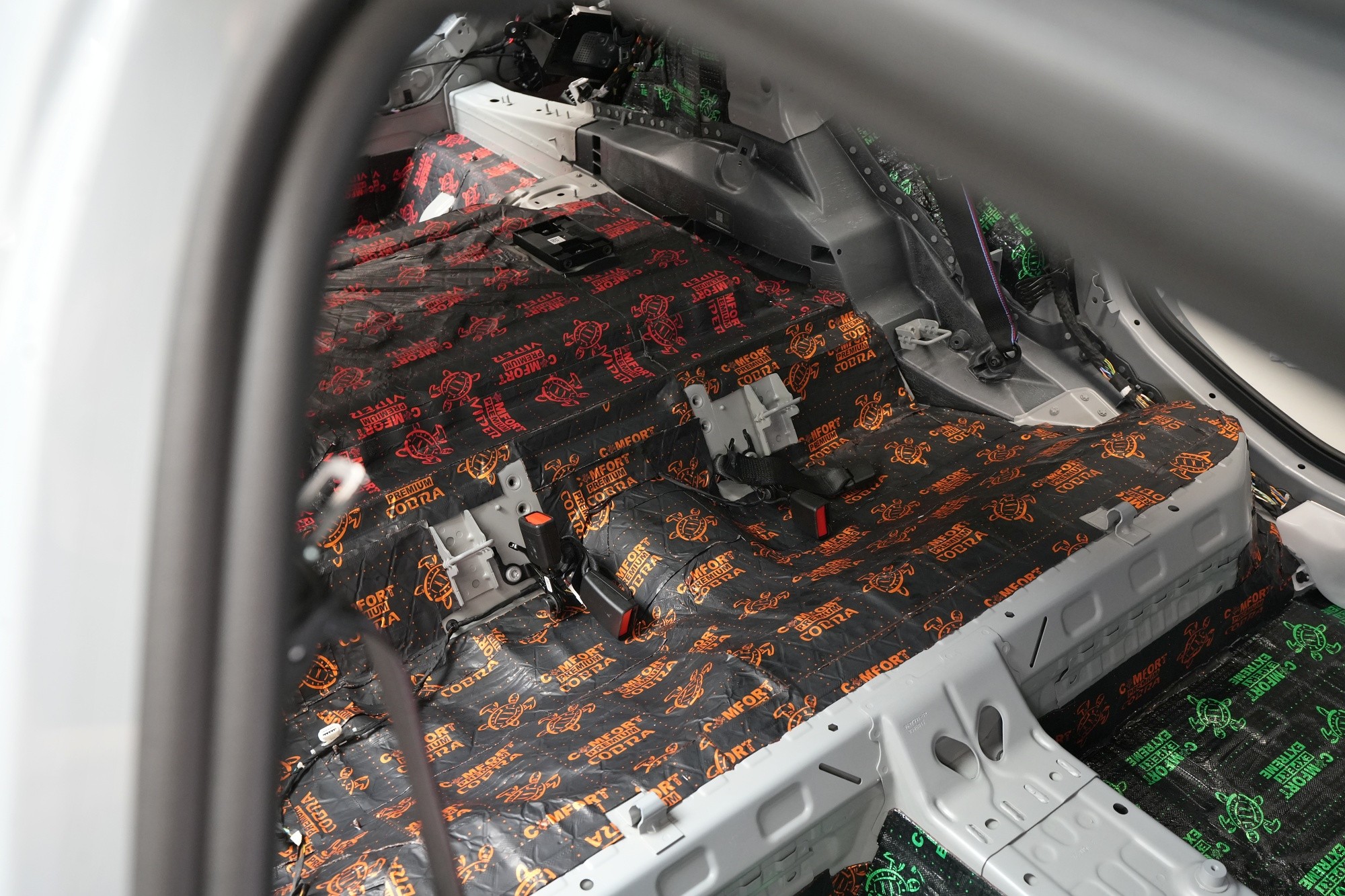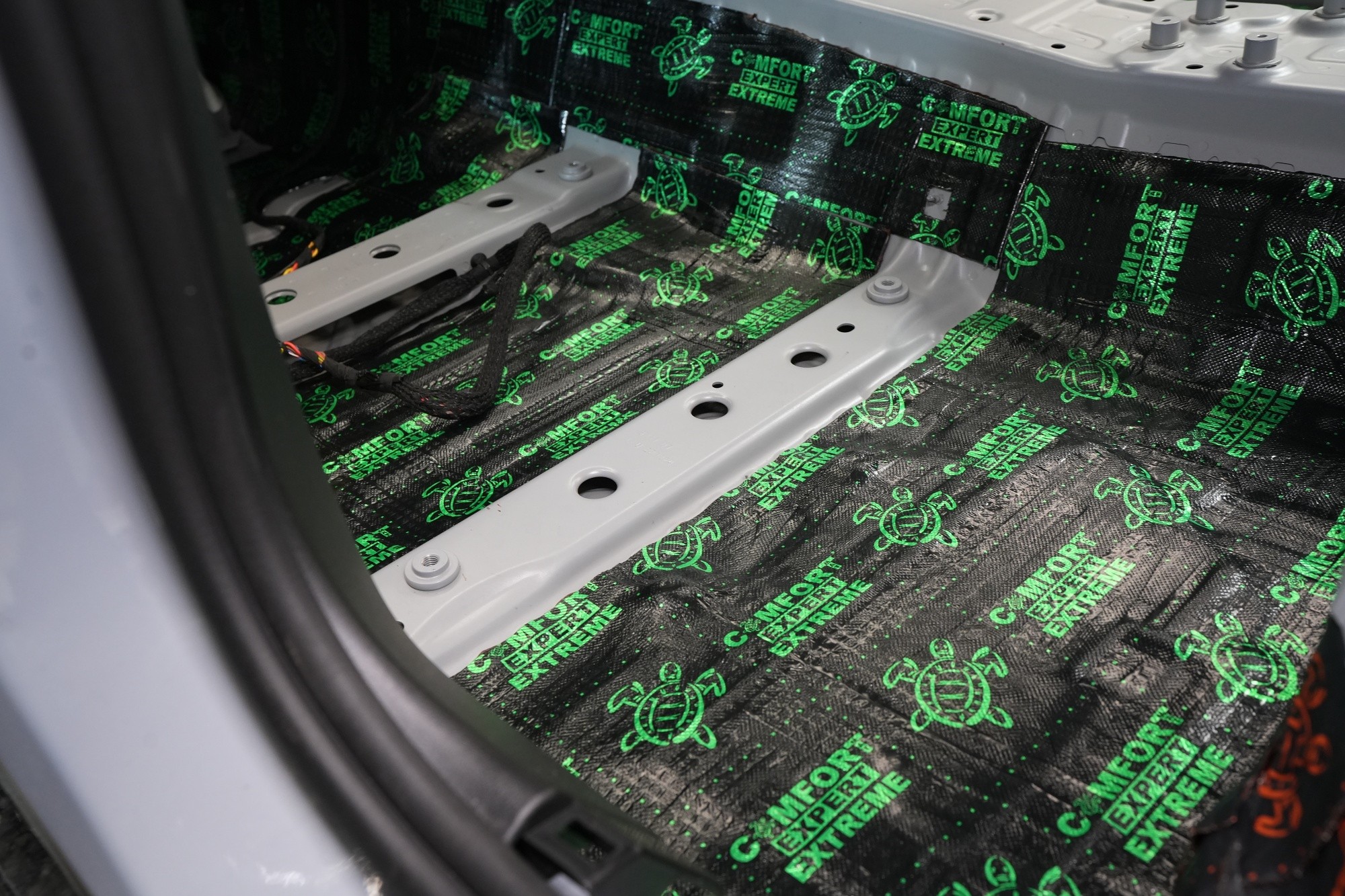 Звукоизолация на BMW 5-та серия (G60) в актуалното поколение. В нашия сервиз не подминаваме и немските премиум автомобили, от които техните собственици очакват повече, поне що се отнася до звуковата изолация. Макар че този модел предлага високо ниво на комфорт и качество, звукоизолацията може значително да подобри впечатлението при шофиране. Нанасянето на нашите материали значително намалява шум от гуми и аеродинамичен шум, което повишава удобството при пътуване, намалява умората и подобрява акустиката на интериора за по-голямо удоволствие от аудиосистемата. Звукоизолацията добавя още едно ниво лукс към вече престижния модел. С клиента се договорихме за нашия пакет за звукоизолация Expert Plus, в който ще се фокусираме върху почти всички най-важни зони на автомобила. Прибавката Plus означава подобрена версия на пакета с по-ефективни материали, насочени към шума от пътя и калниците. Конкретно изолираме предните, задните и петите врати, пода, багажното пространство, покрива, предните и задните калници от външната и вътрешната страна на автомобила. За монтажа работят едновременно четирима наши техници, които извършват монтажа в рамките на 1 работен ден. Резултатът от монтажа е намаление на шума поне с 3 dB, което представлява двукратно намаление спрямо първоначалното състояние. Това предоставя на водача и пътниците още по-приятно и по-луксозно изживяване при шофиране.Показване на продуктиСкриване на продукти