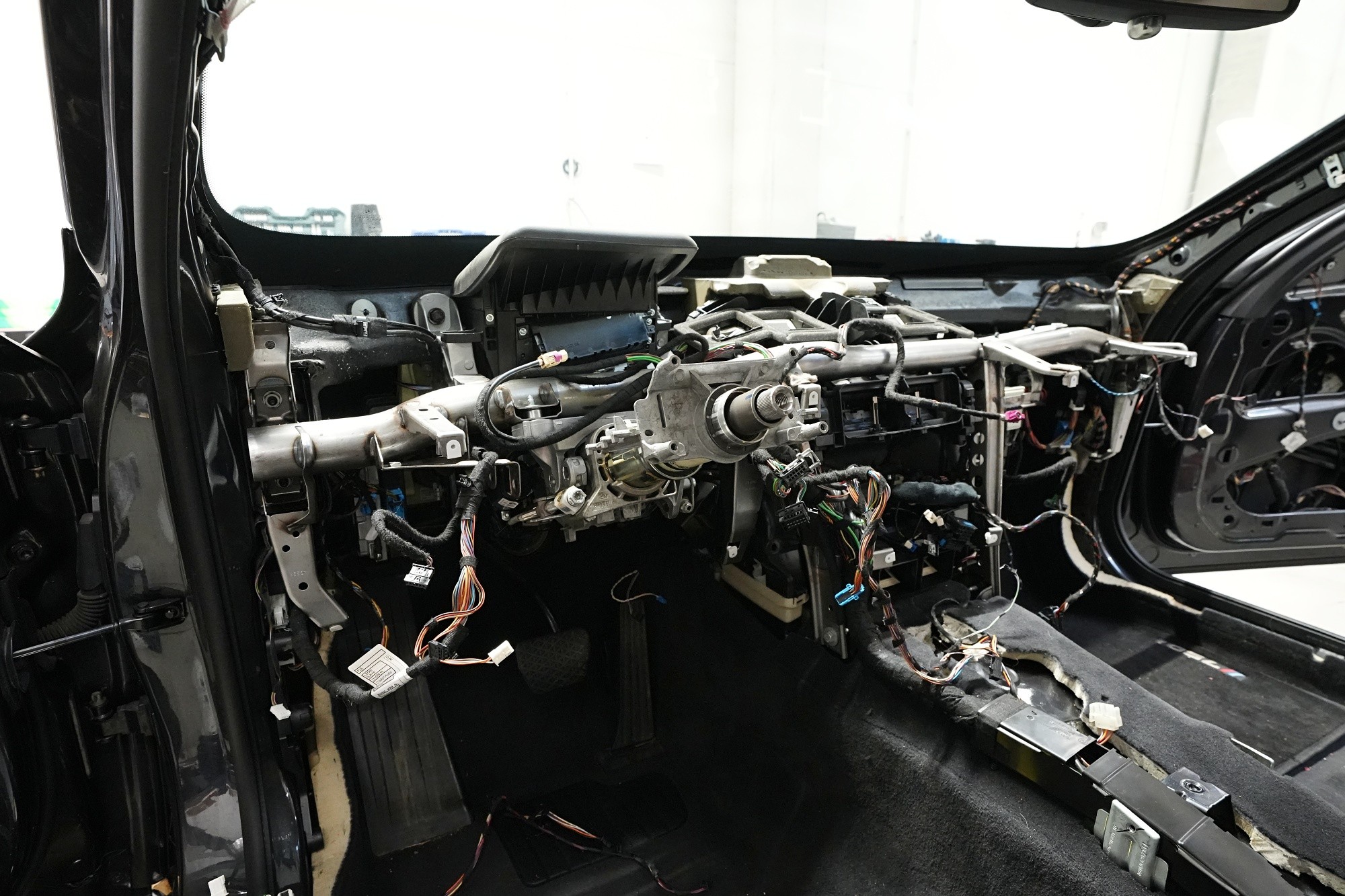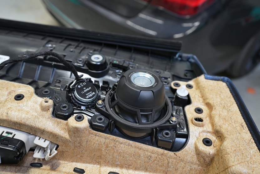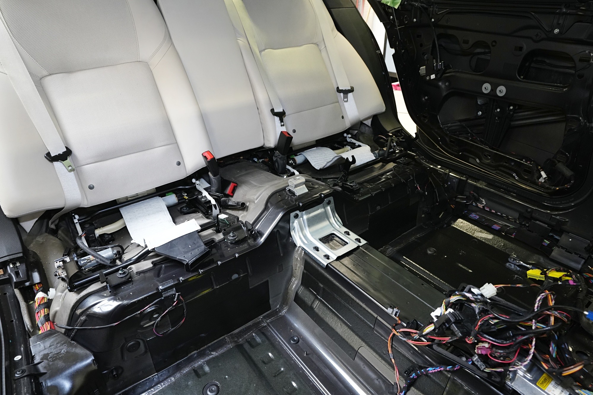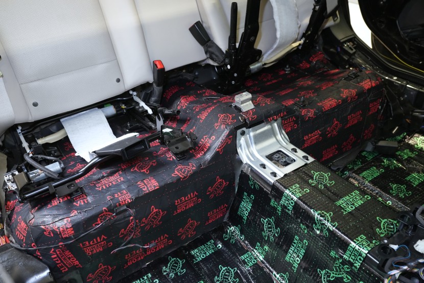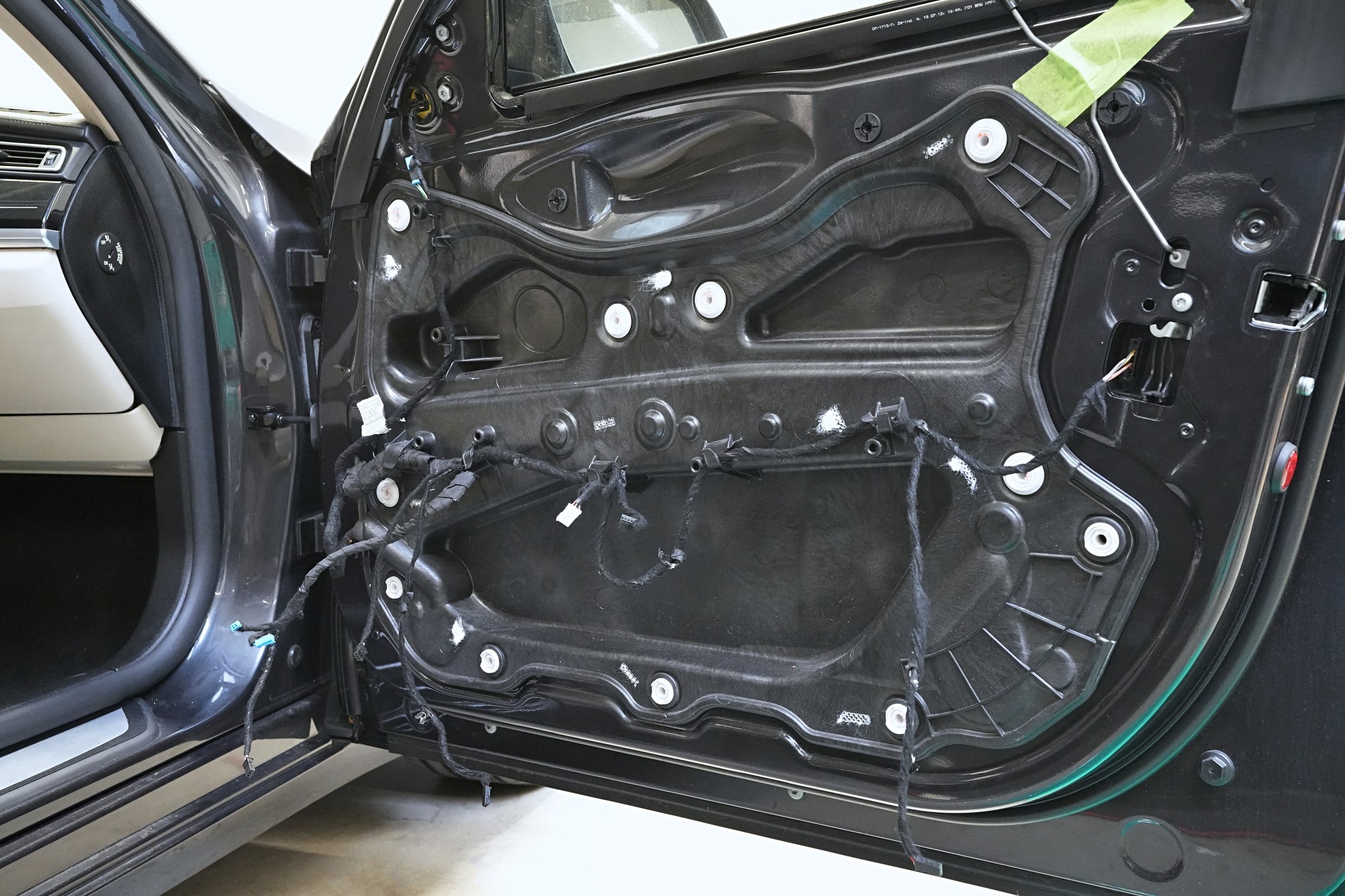 Шумоизолиране и озвучаване на автомобил BMW от 7-ма серия. Изискването на клиента беше ясно — максимално да шумоизолираме този флагман на BMW. Най-високата седмична серия е сред най-добре шумоизолираните автомобили, но както при всички превозни средства, това разбира се може да бъде направено още по-добре. При тази инсталация обърнахме по-голямо внимание и на шума от двигателя, от големите джанти Alpina и най-вече на скърцането в интериора. Поради това демонтирахме и напълно шумоизолирахме таблото и внимателно обработихме предните и задните калници както отвътре, така и отвън. Също така всички пластмасови детайли бяха обработени с подходящи демпфериращи материали и ленти за максимално предотвратяване на триене на пластмасите. След това продължихме по стандартния начин, но с използване на най-ефективните материали на водещия производител Comfortmat. Конкретно избрахме нашия пакет шумоизолация Premium Plus, който индивидуално адаптирахме за максимална ефективност. Насочихме се към всички ключови области на автомобила — предни, задни и петоалвите врати, пода, багажното отделение, предните и задните калници отвътре и отвън, капака и споменатото табло. Посветихме се и на озвучаването от италианския производител Audison, което е изключително не само със своето качествено звучене и висока мощност, но и с монтаж без никаква намеса в оригиналната електроинсталация. Това е възможно благодарение на разработена система с окабеляване, която осигурява пълна интеграция към фабричния главен блок, без да се налага рязане, запояване или полагане на ново окабеляване. Говорителите и субуферите Audison имат същите размери, форма, крепеж и конектори като фабричните говорители и цялото решение е в духа на Plug & Play. Всичко ново се управлява от осемканален цифров усилвател с DSP процесор Audison, който доставя мощност за всички говорители и субуфери. Последната фаза от инсталацията е измерване на звука с калибриран микрофон и прехвърляне на резултатите в софтуера на DSP процесора. Там настройваме подредбата на говорителите, времевите корекции според разположението на говорителите и детайлен еквалайзер. Резултатът е висококачествен звук, настроен специално за дадения автомобил, който по качество и мощ значително надминава дори допълнителните аудиопакети от по-висок клас от Harmann Kardon.