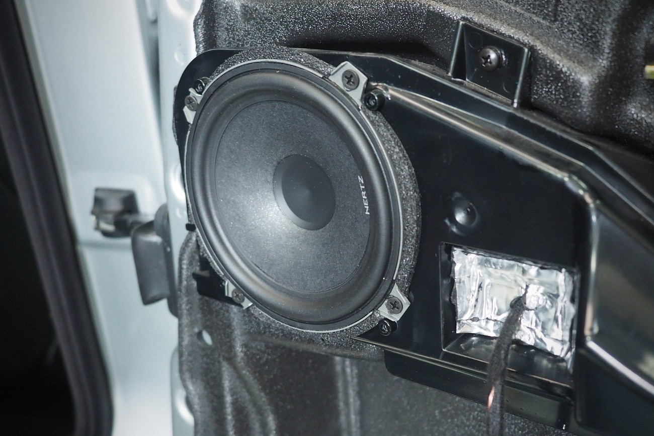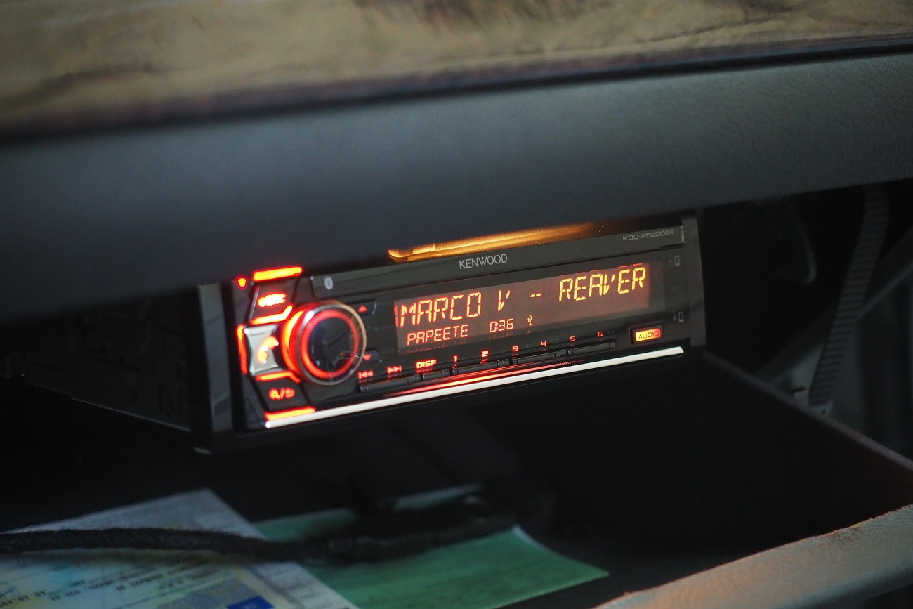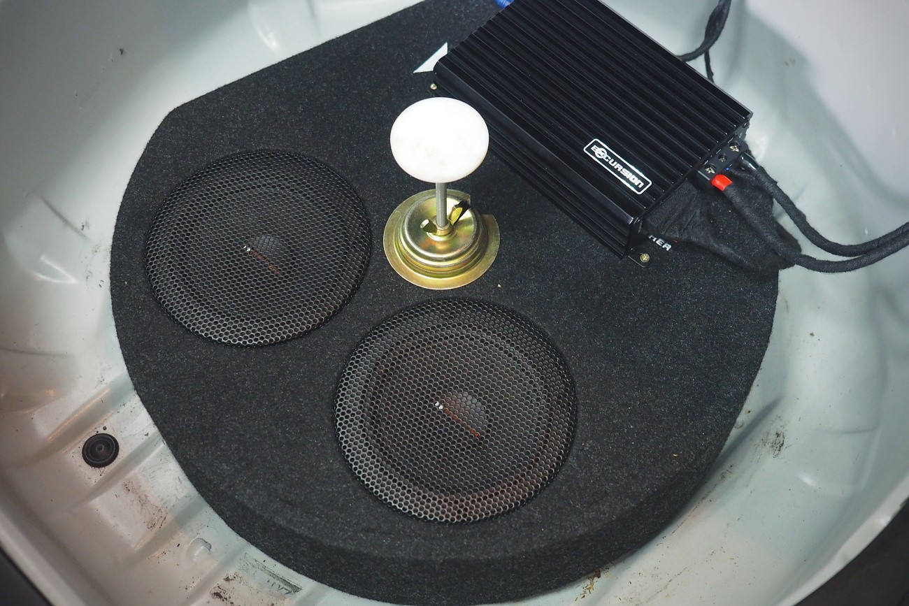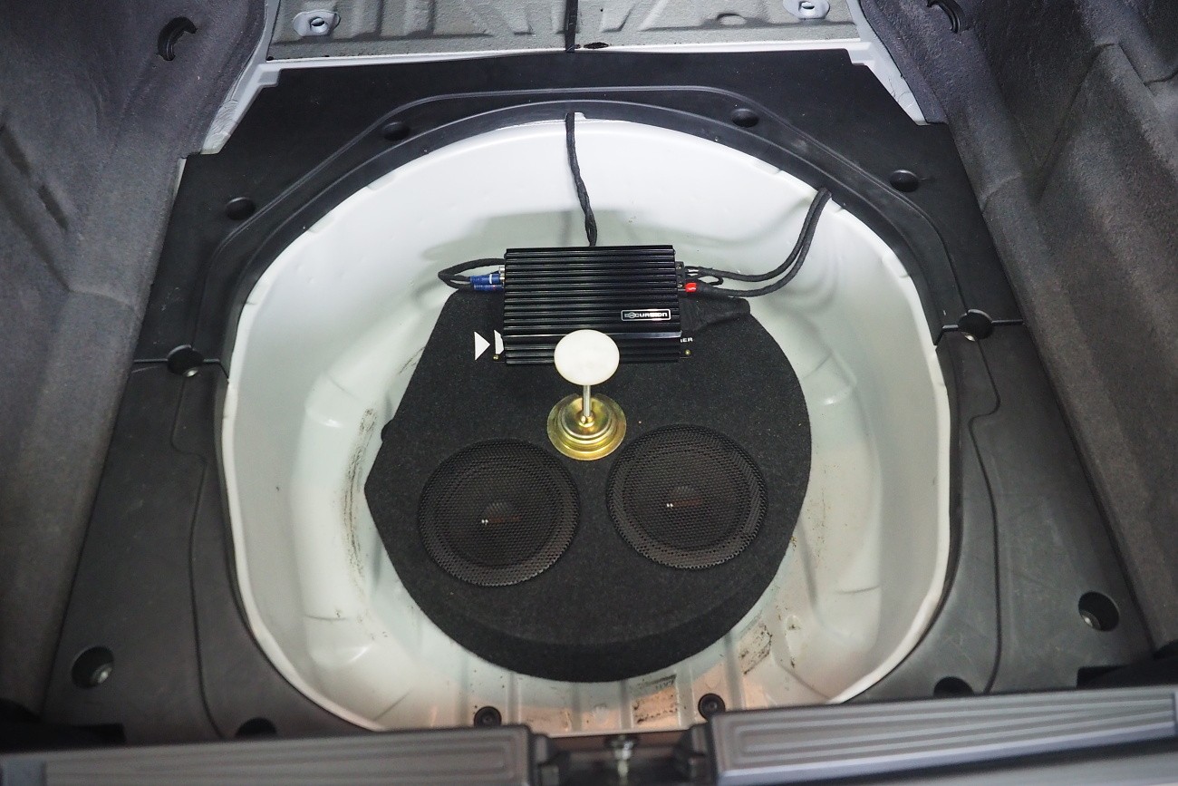 Озвучаването на седмата серия BMW, конкретно модел E38. Първоначалното основно звено оставихме на мястото му поради дизайна и новото радио с USB вход и Bluetooth handsfree поставихме в жабката на пътника. Фабричните високоговорители заменихме с компонентни високоговорители Hertz от серия Cento, които предлагат за своя клас много добро качество на звука и висока чувствителност. Тъй като високоговорителите с диаметър 13 cm не изпъкват с особено изразена басова част, инсталирахме в резервната гума двойно субуферно решение в компактна кутия марка Match.