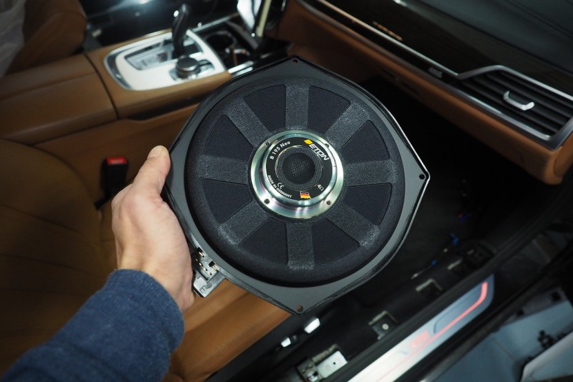 Дори най-новата седма серия на BMW за съжаление не предлага слушаемо озвучаване с базовия аудио пакет и значително подобрение не дава нито Hi-Fi sound system (option 676). В този автомобил инсталирахме компонентни високоговорители на немския производител Eton и субуфъри на същата марка, разположени под седалките. Тези компоненти са произведени специално за автомобили BMW, инсталацията е следователно лесна, всичко пасва перфектно и не е необходимо да се намесва в оригиналната инсталация. За да използваме максимално потенциала на високоговорителите и особено на субуферите, инсталирахме четириканален усилвател също марка Eton, който доставя на компонентите достатъчна мощност без изкривяване дори при най-високи нива на сила на звука. Резултатът е детайлен и динамичен звук, който с лекота превъзхожда дори допълнителното озвучаване от Harmann Kardon.