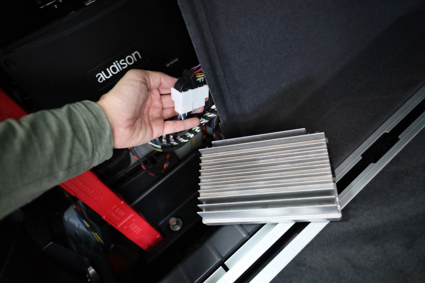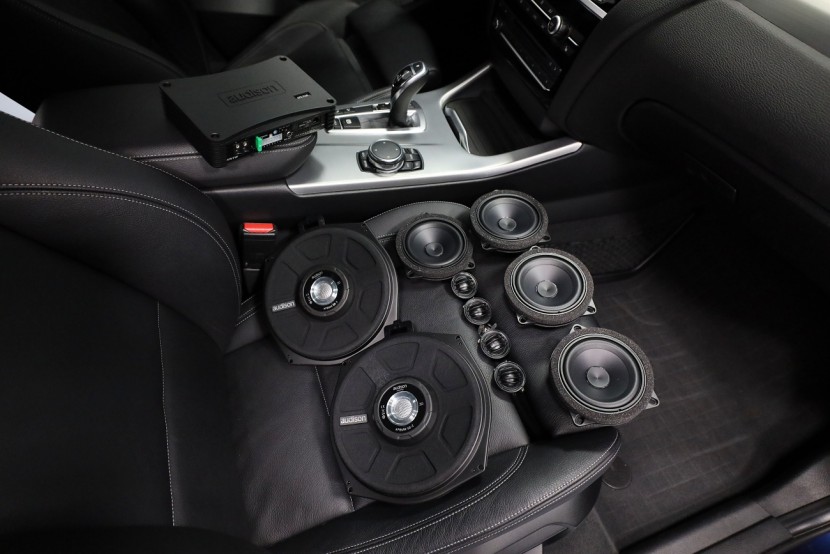 Монтаж на първокласна озвучителна система от италианския производител Audison в BMW X4, който в много отношения превъзхожда конкурентните продукти не само със своя звук, но и с инсталацията без каквато и да е намеса в оригиналната електроинсталация. Audison предлага цялостна система с кабелна инсталация, която осигурява пълна интеграция с фабричната система, без да е необходимо да режем, спояваме или прокарваме нова традиционна кабелна инсталация. Така няма риск да загубите гаранцията на новия автомобил и озвучаването може по всяко време да бъде премахнато и всичко да се върне към оригиналното състояние. Новото озвучаване е създадено по мярка за конкретния автомобил и всичко се настройва в компютър чрез софтуера на DSP процесора, където нагласяме звука на новите говорители към идеалните параметри за дадения автомобил. В този конкретен автомобил имаше "платено" озвучителен пакет Hi-Fi Sound System (S676A), който включва компонентни говорители в предните врати, компонентни говорители в задните врати, централен говорител и 200 mm субуфери под седалките. Всичко е свързано към фабричния усилвател в багажника. Качеството на озвучаването обаче далеч не отговаря на цената на автомобила и звукът е значително под средното ниво. Новият източник е 8-канален дигитален усилвател с DSP процесор Audison, който доставя мощност за всички говорители и субуфери. Основното предимство е лесната инсталация. Усилвателят благодарение на специфичен кабел го свързваме към оригиналната кабелна инсталация, която водеше до фабричния усилвател. По този начин използваме оригиналното захранване, маса и говорителни кабели без никаква промяна. Всичко отнема няколко десетки минути и усилвателят, благодарение на малките си размери, може да бъде скрит в страничната облицовка на багажника. За този монтаж избрахме по-мощната версия на отличения с награда EISA (Best Product в категория In-Car Integration) усилвател Audison AP F8.9 bit, който ще достави висока мощност на всички говорители и субуфери и ще използва максимално техния потенциал. Монтажът на компонентните говорители в предните и задните врати е лесен благодарение на идентичното закрепване и същите конектори, които имат и фабричните говорители, така че не са необходими допълнителни монтажни намеси. Достатъчно е да смените говорителите и да щракнете конектора. Същото важи и за субуферите, които са поставени под седалките. Централният говорител оставихме фабричен в интерес на бюджета и го намалихме леко. Последната и най-важна стъпка е настройката на говорителите на DSP процесора на усилвателя. В компютърната програма задаваме подредбата на говорителите, кросоувърите, филтрите, времевите корекции според позиционирането на говорителите и детайлен еквалайзер. Резултатът е висококачествен звук, настроен специално за дадения автомобил, който по качество и мощ значително превъзхожда дори допълнителното озвучаване от по-висок клас Harmann Kardon.