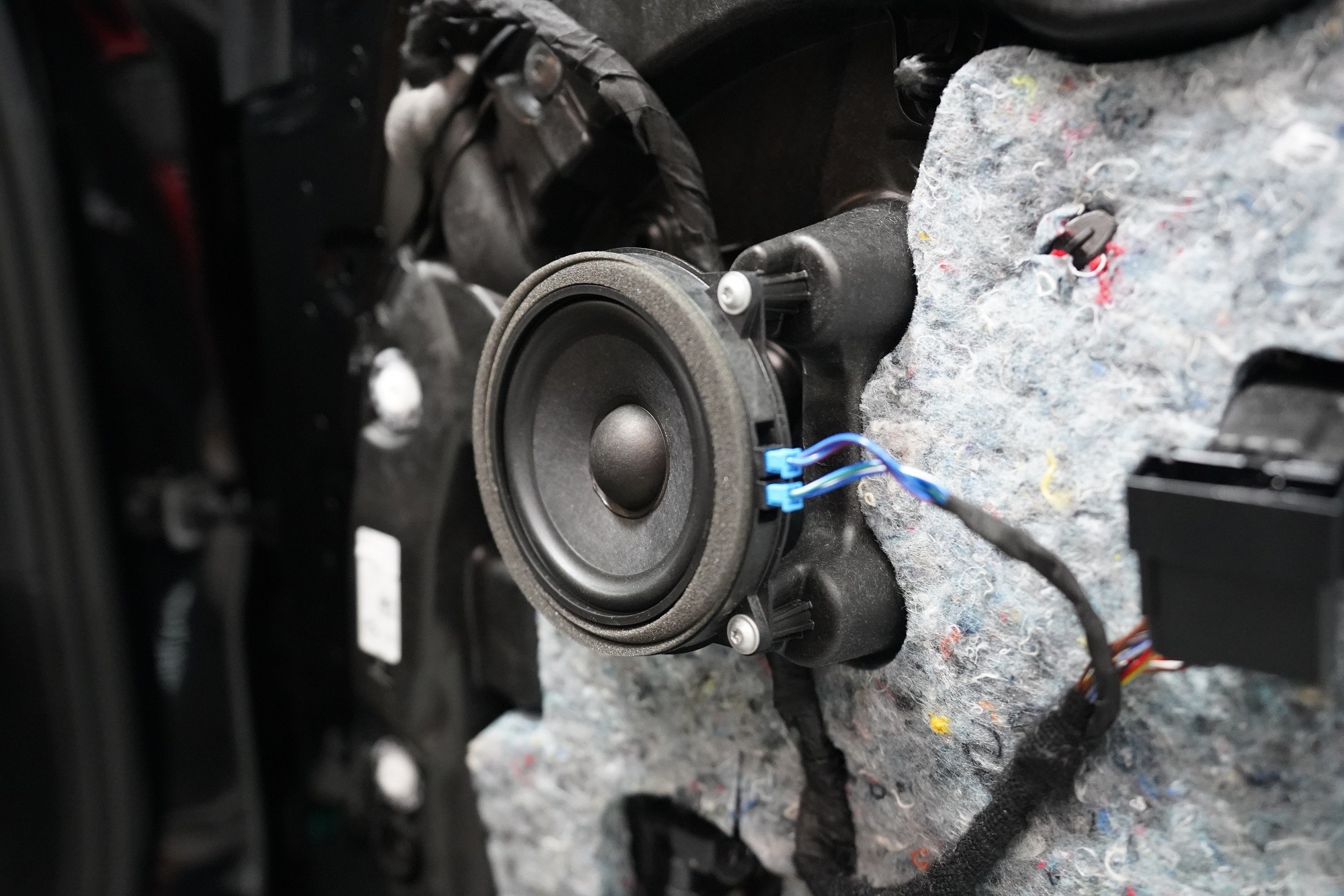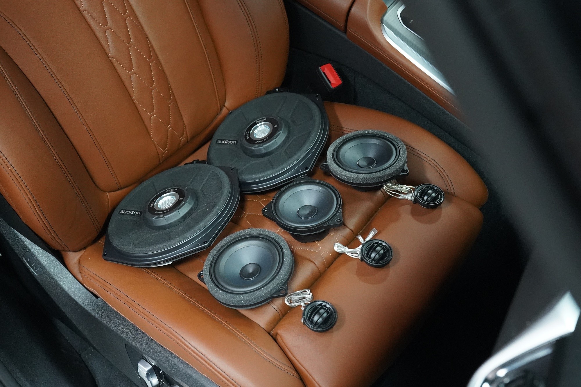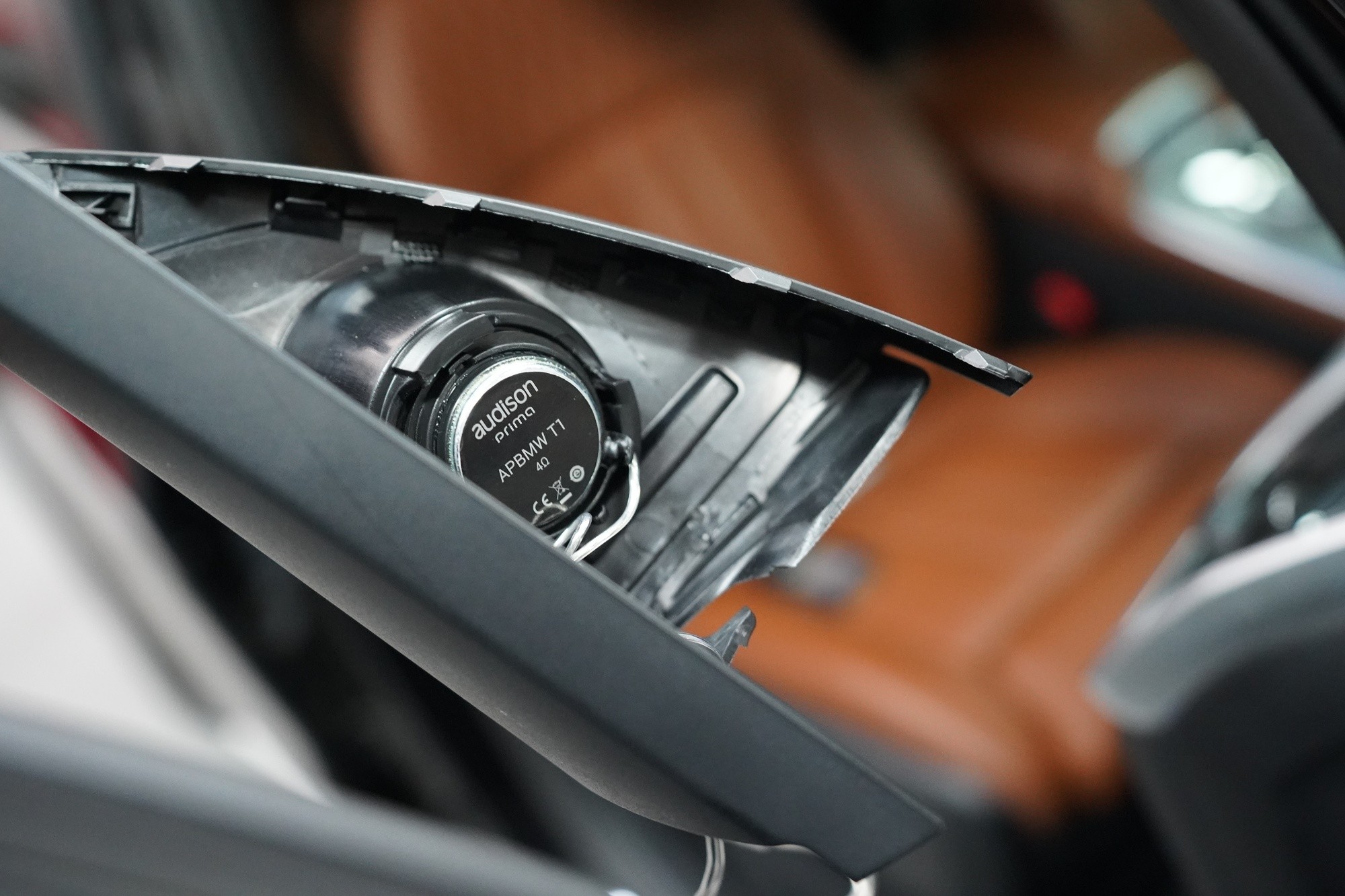 Ново озвучаване на автомобил BMW X5 от последното поколение. С изключение на задните говорители, които собственикът пожела да запази, сменихме всички говорители с OEM говорители на италианския производител Audison, които се отличават с отличен звук, динамика и висока чувствителност, благодарение на която не е необходимо инсталирането на усилвател. Говорителите Audison впечатляват и с инсталация без каквото и да е намеса в оригиналната електроинсталация благодарение на специфичната кабелировка и форма на говорителите, което осигурява интеграция с фабричната система, без да е необходимо рязане, запояване или прокарване на нови кабели. Така няма риск да загубите гаранцията на новия автомобил и озвучаването може да бъде демонтирано по всяко време и всичко да бъде върнато в първоначалното състояние. Конкретно инсталирахме компонентни говорители във предните врати, централен говорител в таблото и субуфери под седалките на водача и пътника. Резултатът е значително по-качествено озвучаване с повече детайли и по-динамичен и прецизен басов компонент. И всичко това за 6 часа работа.