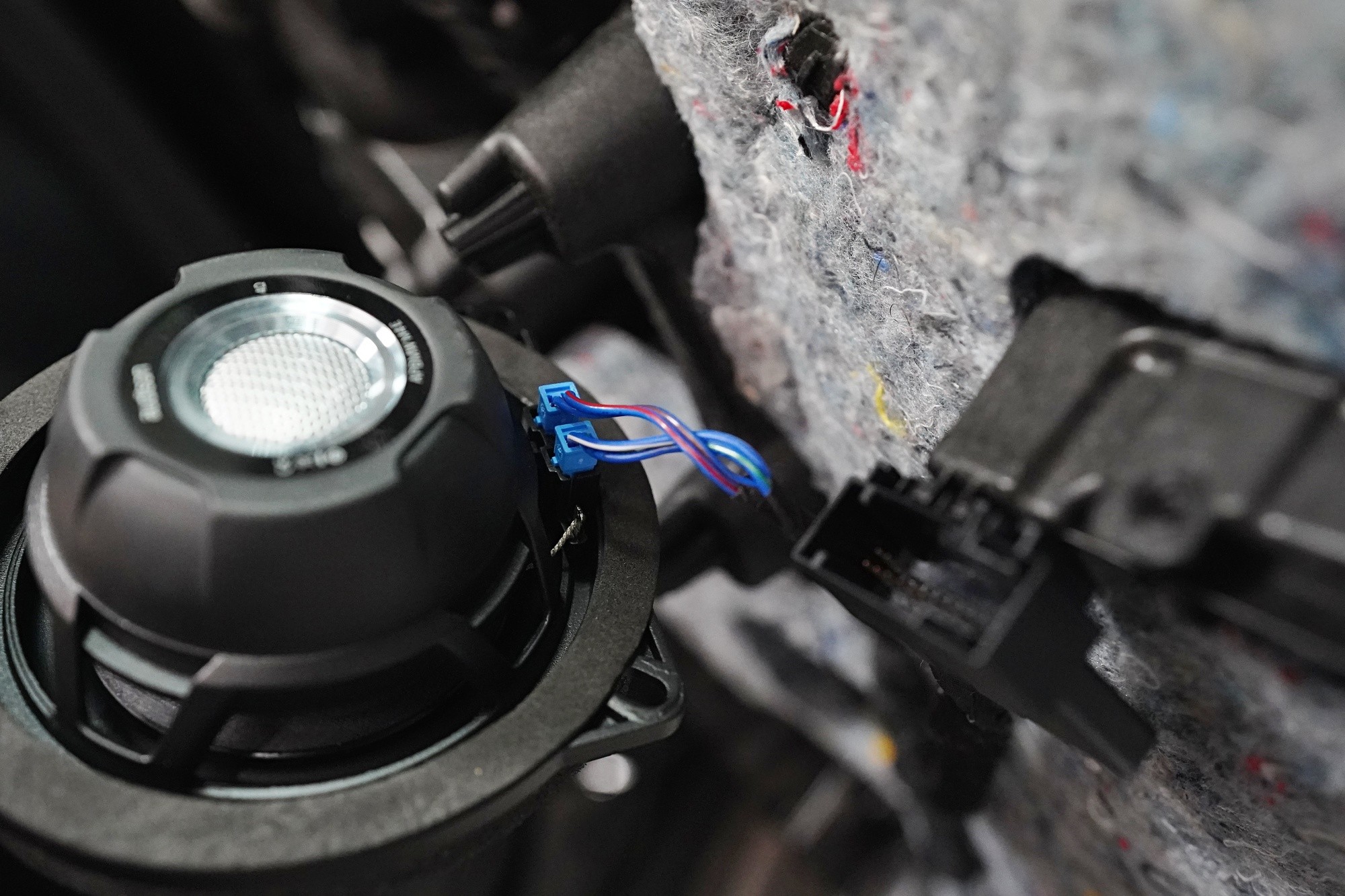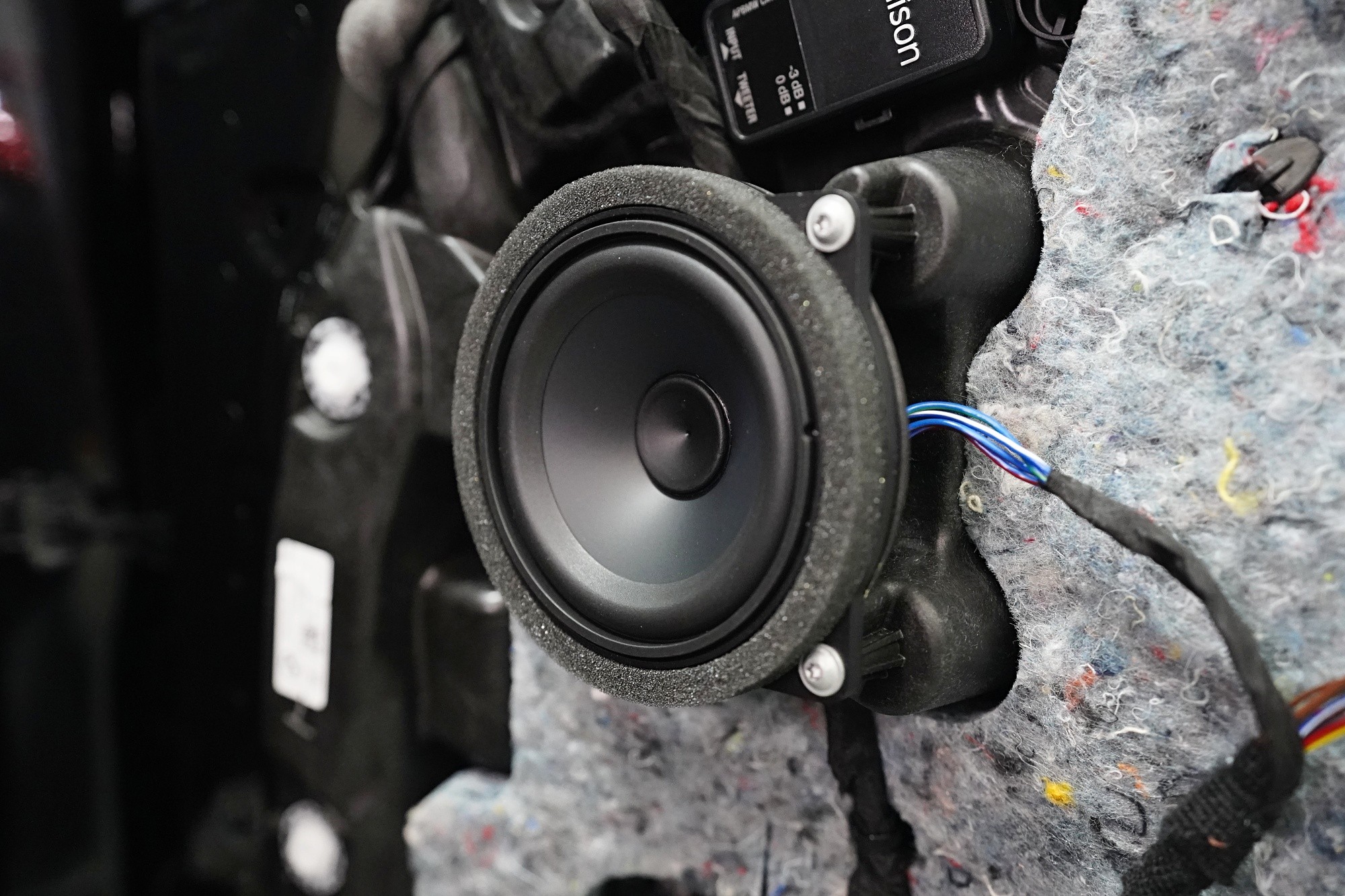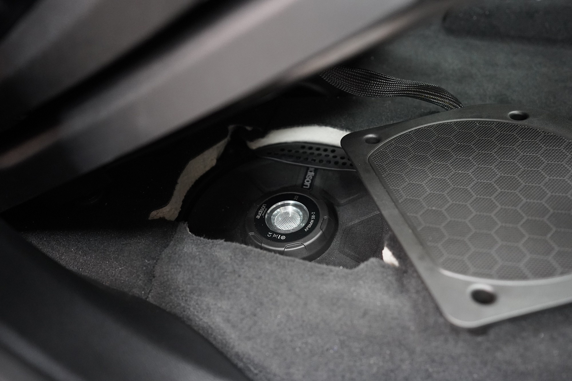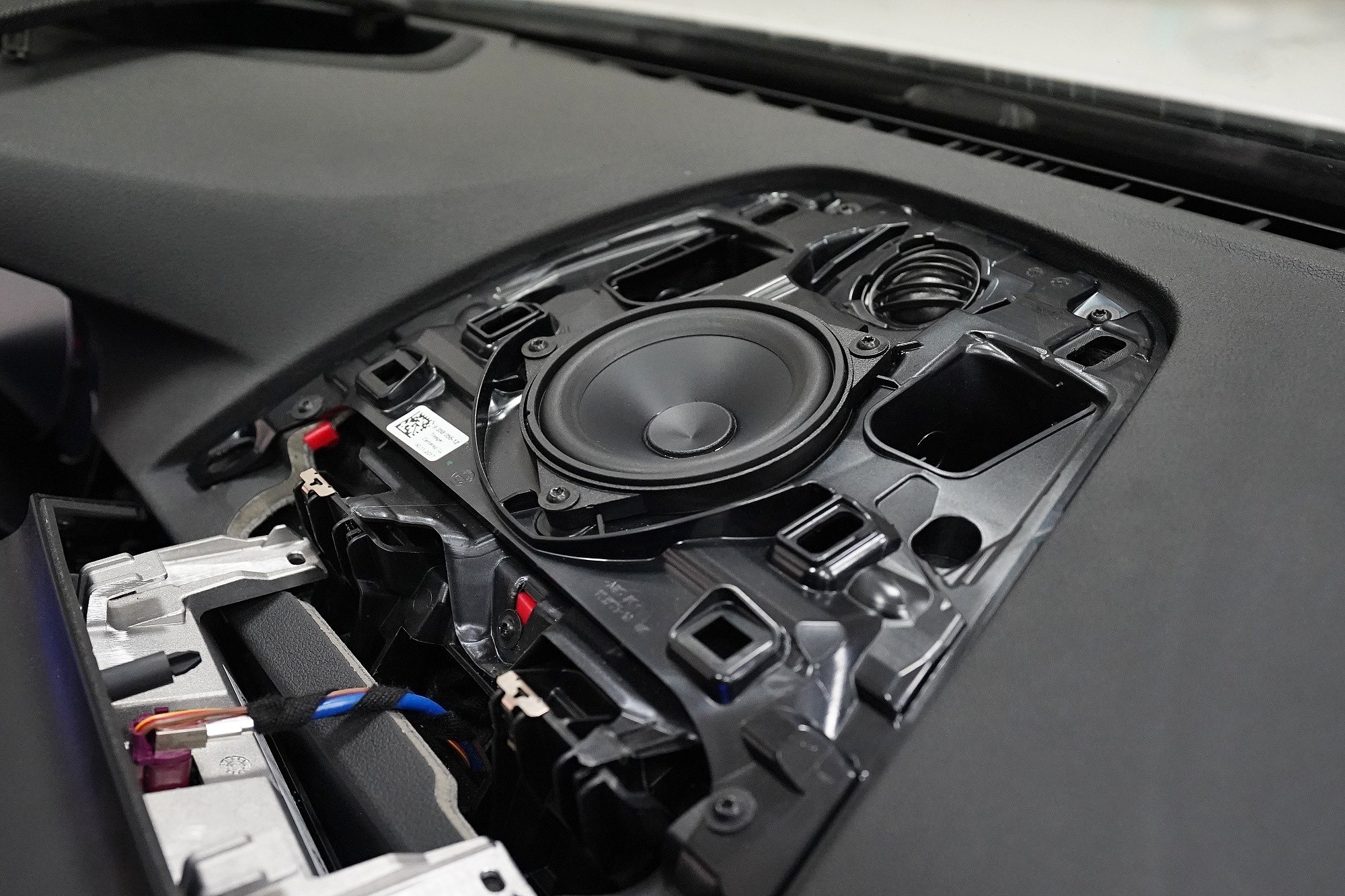 Ново озвучаване на автомобил BMW X5 от последното поколение. С изключение на задните говорители, които собственикът пожела да запази, сменихме всички говорители с OEM говорители на италианския производител Audison, които се отличават с отличен звук, динамика и висока чувствителност, благодарение на която не е необходимо инсталирането на усилвател. Говорителите Audison впечатляват и с инсталация без каквото и да е намеса в оригиналната електроинсталация благодарение на специфичната кабелировка и форма на говорителите, което осигурява интеграция с фабричната система, без да е необходимо рязане, запояване или прокарване на нови кабели. Така няма риск да загубите гаранцията на новия автомобил и озвучаването може да бъде демонтирано по всяко време и всичко да бъде върнато в първоначалното състояние. Конкретно инсталирахме компонентни говорители във предните врати, централен говорител в таблото и субуфери под седалките на водача и пътника. Резултатът е значително по-качествено озвучаване с повече детайли и по-динамичен и прецизен басов компонент. И всичко това за 6 часа работа.