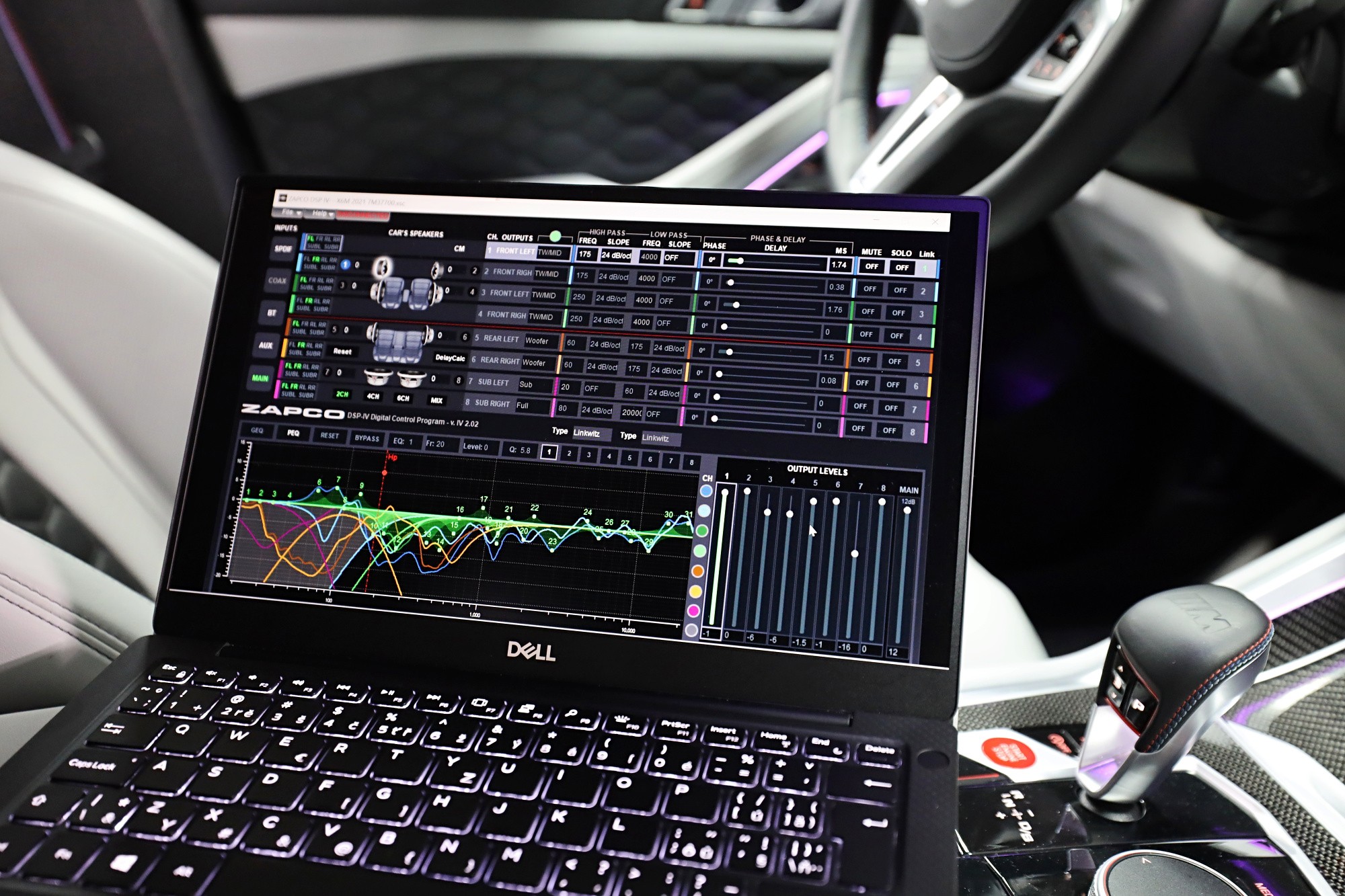 Вид на инсталациятаOzvučení s měřením zvuku a nastavení na DSP procesoru