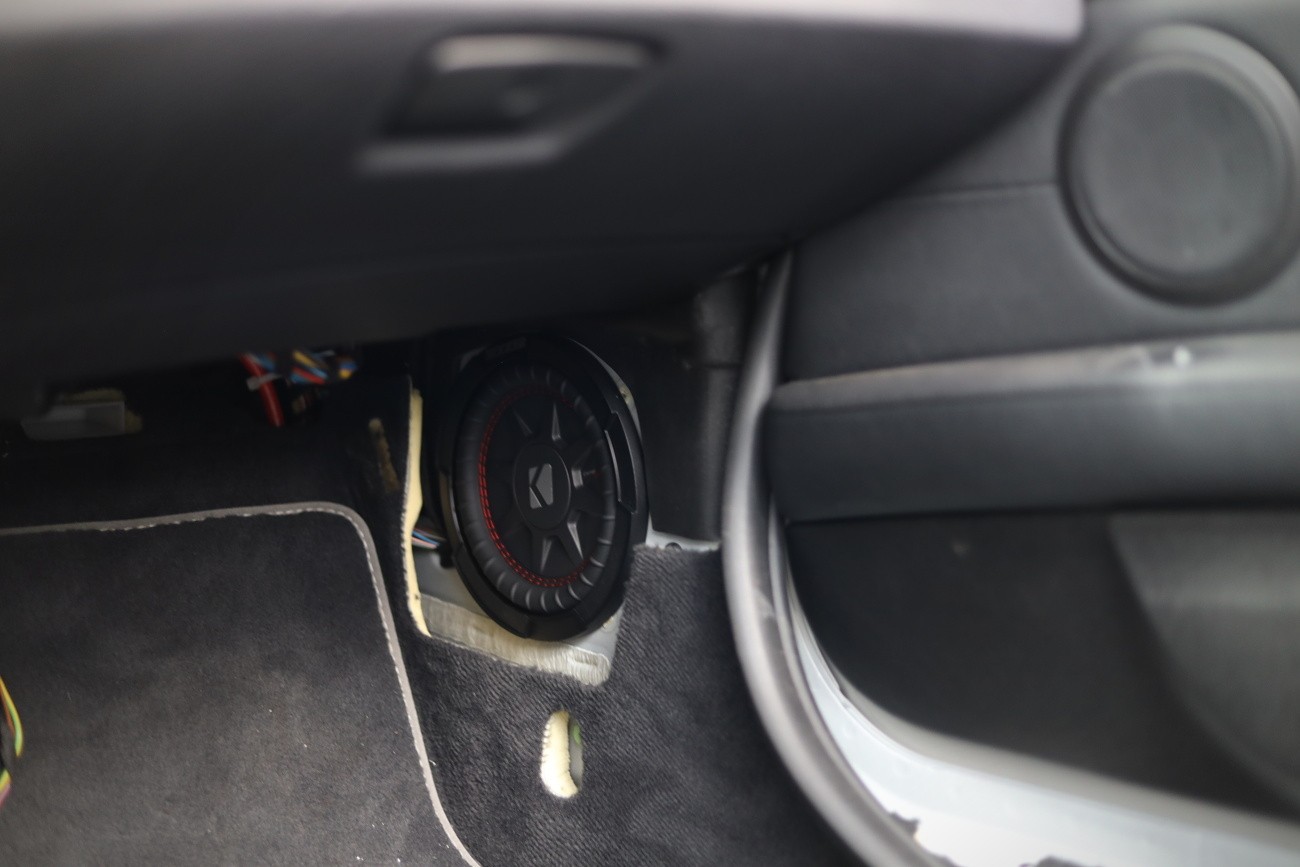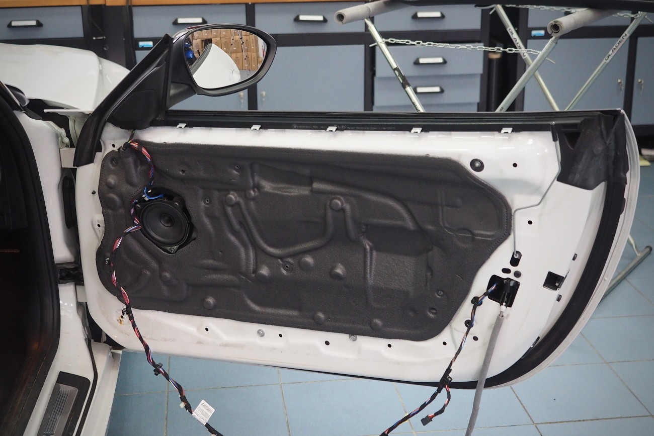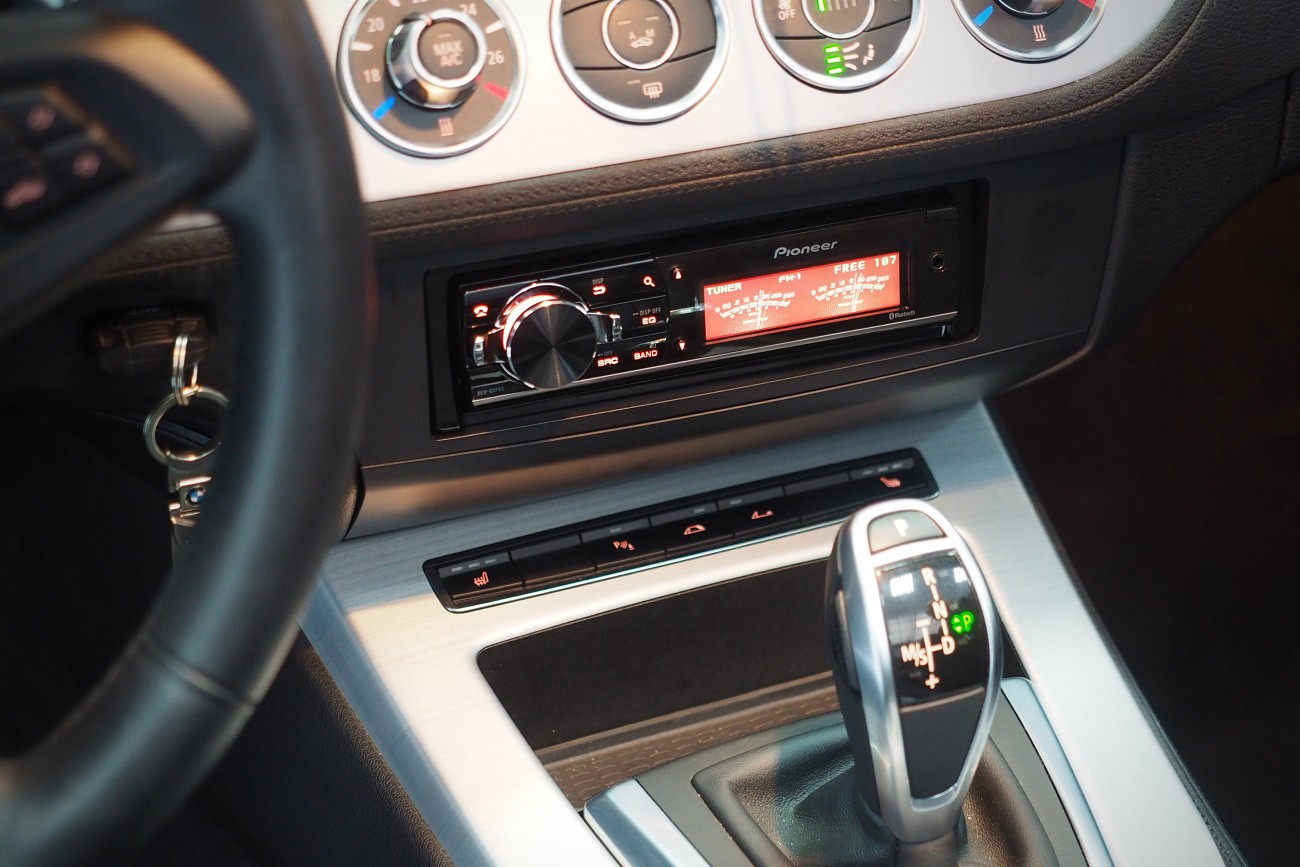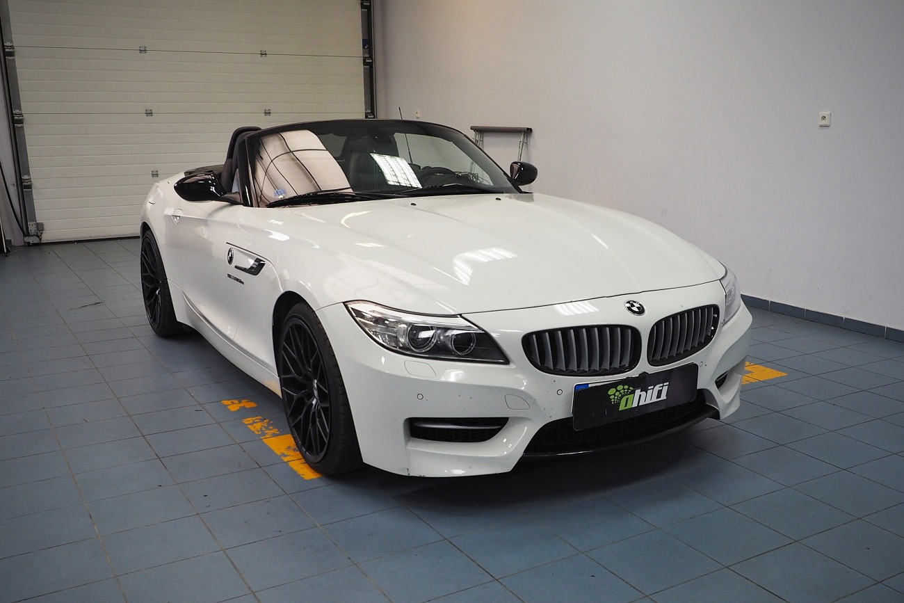 Ново озвучаване на автомобила BMW Z4 (E89). Заводското основно устройство заменихме с висококласно авторадио Pioneer DEH-80PRS, което освен много качествен звук предлага и обширни възможности за настройка за идеално калибриране на звука. Високоговорителите в вратите заменихме с компонентни говорители на италианския производител Audison, които са специално предназначени за BMW и предлагат много качествен звук дори при свързване без външен усилвател. Заводските субуфъри заменихме със субуфъри Kicker, които свързахме към миниатюрен двуканален усилвател Rockford Fosgate, който благодарение на размерите си успяхме да позиционираме ненатрапчиво в арматурното табло. Озвучаването надминава по звук и мощност многократно оригиналната опционална конфигурация Hi-Fi Sound System (option 676).