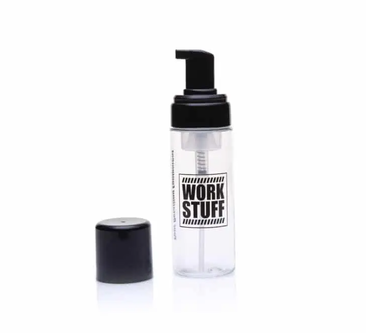 Work Stuff Foam Bottle е прозрачна бутилка (150 ml) с помпа за пяна, изработена от PET материал. Тя е идеална за използване с продукти за почистване на кожа и APC почистващи препарати, когато е необходим пянен разтвор. Предимството при използването на пяна е, че позволява нанасяне на концентриран разтвор в конкретна зона без риск от разпространяване върху нежелани места - за разлика от течните разтвори. Тази дозираща бутилка е идеална за почистване на автомобилни интериори, като пластмаси, кожа и други деликатни повърхности, които изискват меко и прецизно почистване.Основни характеристики