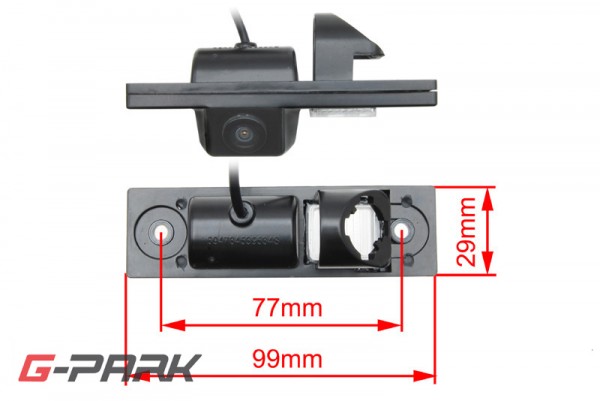 CCD камера за паркиране за монтаж в лампата за осветление на задната регистрационна табела. Камерата има място за поставяне на патрон с крушка от оригиналното осветление на регистрационната табела.