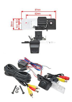 CCD камера за паркиране за монтаж в лампата за осветление на задния регистрационен номер. Камерата съдържа място за поставяне на фасунга с крушка от оригиналната лампа за регистрационния номер.