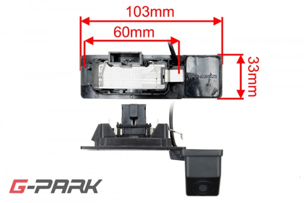 CCD паркинг камера за монтаж в лампата за осветяване на задния регистрационен номер. Камерата включва място за поставяне на фасунга с крушка от оригиналната лампа за регистрационния номер.