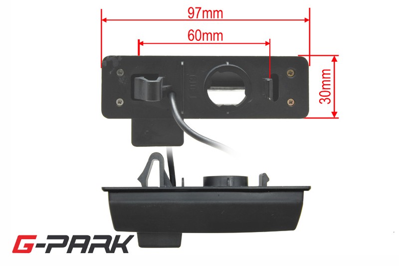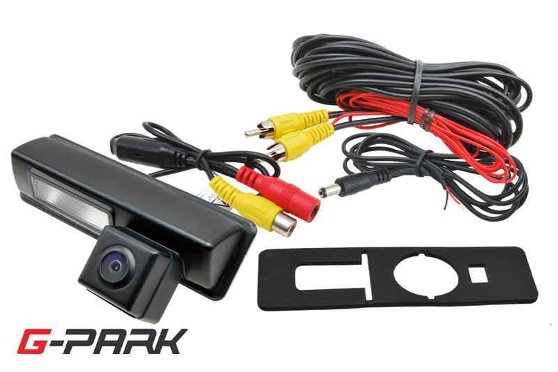 CCD parkovací kamera pro instalaci na místo osvětlení zadní registrační značky. Součástí kamery je místo pro umístění patice se žárovkou z původního světla pro registrační značku.