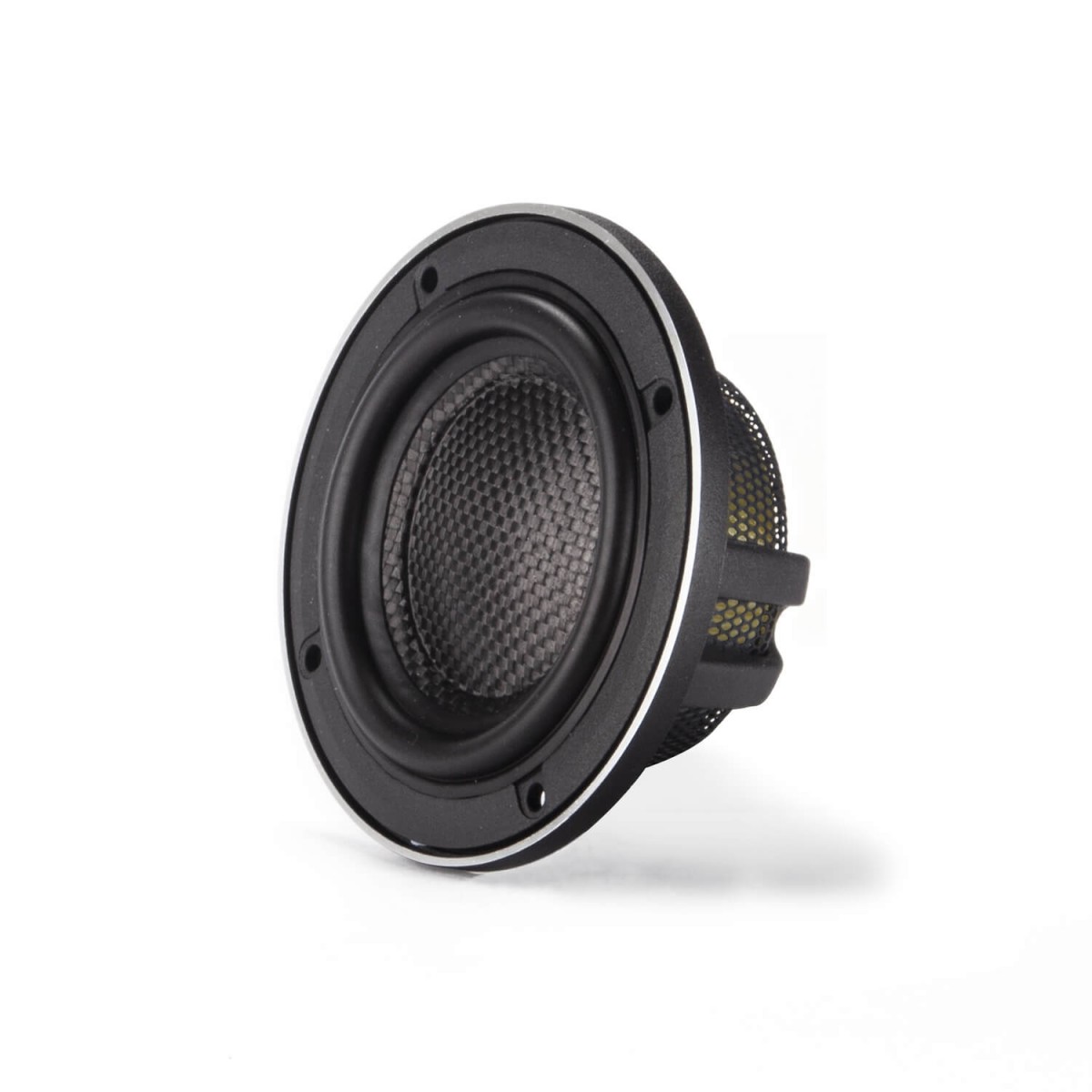| Тип на високоговорителитеКоаксиални високоговорители: Коаксиалните високоговорители се характеризират с конструкция, наречена всичко в едно. Високочестотният и среднобасовият говорител са в един и същ кош. Предимството е по-лесен монтаж, но поради свързването или близостта на честотните диапазони в един говорител обикновено се понижава качеството на звука. Обикновено в центъра на среднобасовия говорител се намира високочестотният говорител, чиито звукова бобина работи във втората въздушна междина на общия магнитен кръг. Коаксиален говорител с три честотни диапазона се състои от среднобасов говорител, отпред на специален носач е поставен средночестотният говорител и отделен високочестотен. Компонентни високоговорители: Компонентните високоговорители се отличават с разделянето на отделни честотни диапазони: високочестотен + среднобасов + евентуално басов диапазон. Отделните говорители могат да бъдат разположени напълно отделно, което води до по-добро звуково и акустично представяне. В огромното мнозинство от случаите при компонентните високоговорители се доставя и външна кросоувърна мрежа, която разделя високите, средните/среднобасовите и при системи с три честотни диапазона и басовите честоти, както и позволява настройване на нивото в децибели на високочестотния говорител (напр. +2 dB, 0 dB, -2 dB), стръмността (напр. 6 dB/октава, 12 dB/октава) или активно/bi-amp свързване. | Средночестотни |