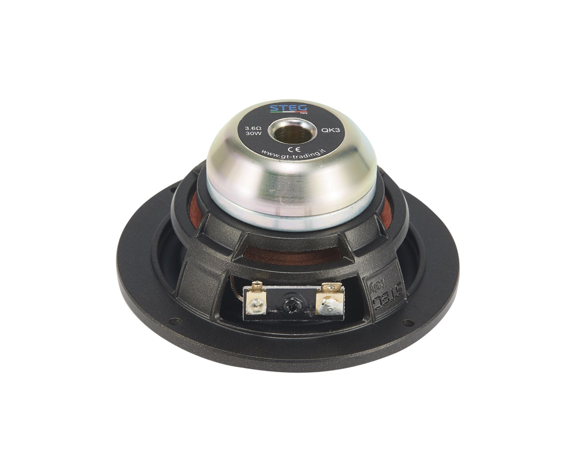 Кошът на говорителя е фрезован от твърд блок алуминий, което позволява да се почувства звук без резонанси. Тествано на най-добрите симулатори и при изключително високо натоварване. Тези говорители впечатляват слушателя с качество на звука, прецизност и импулсна реакция. Всичко това благодарение на тяхната изключително ниска резонансна честота.| Каталожен номер | QK 3 |